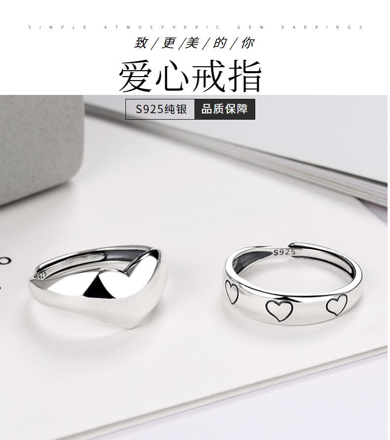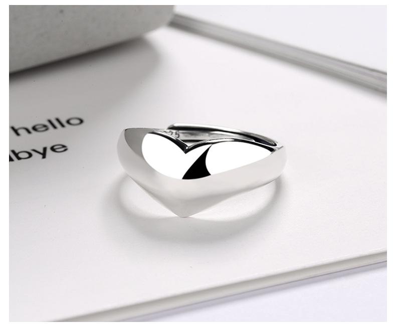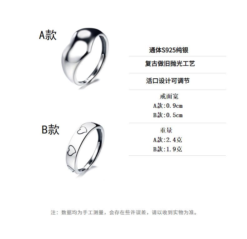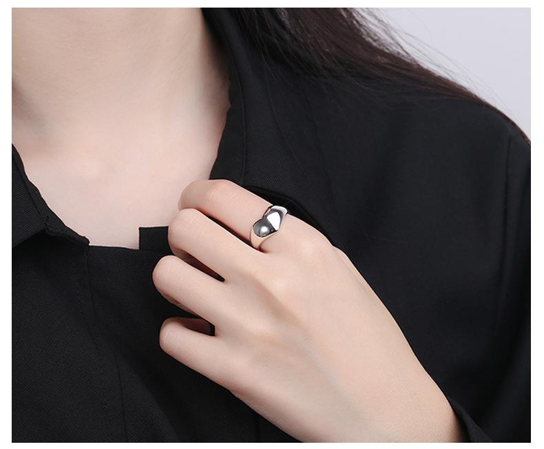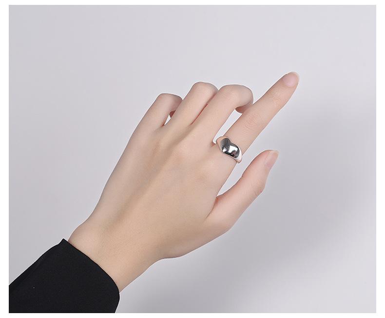 Anillo de plata de ley S925 con diseño de amor simple, estilo coreano, elegante y frío, para mujer, estilo retro desgastado.