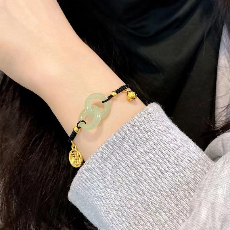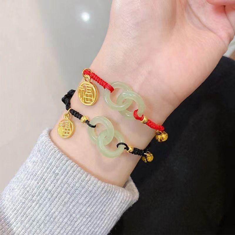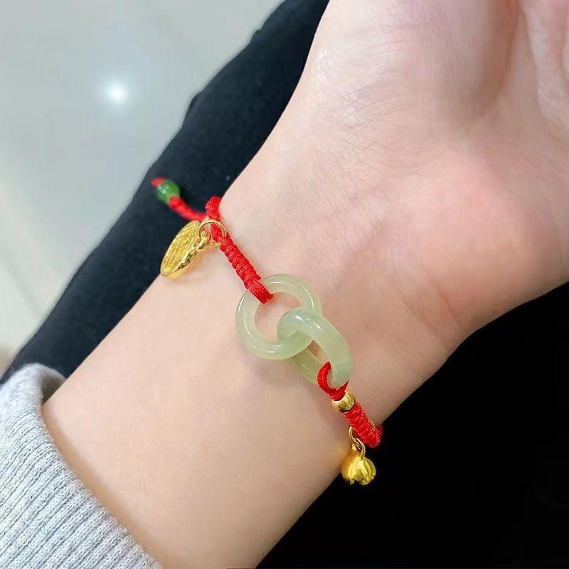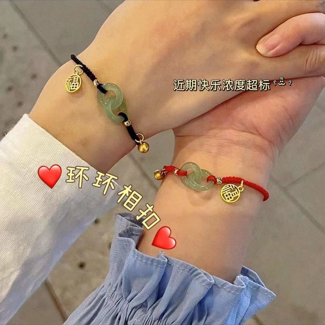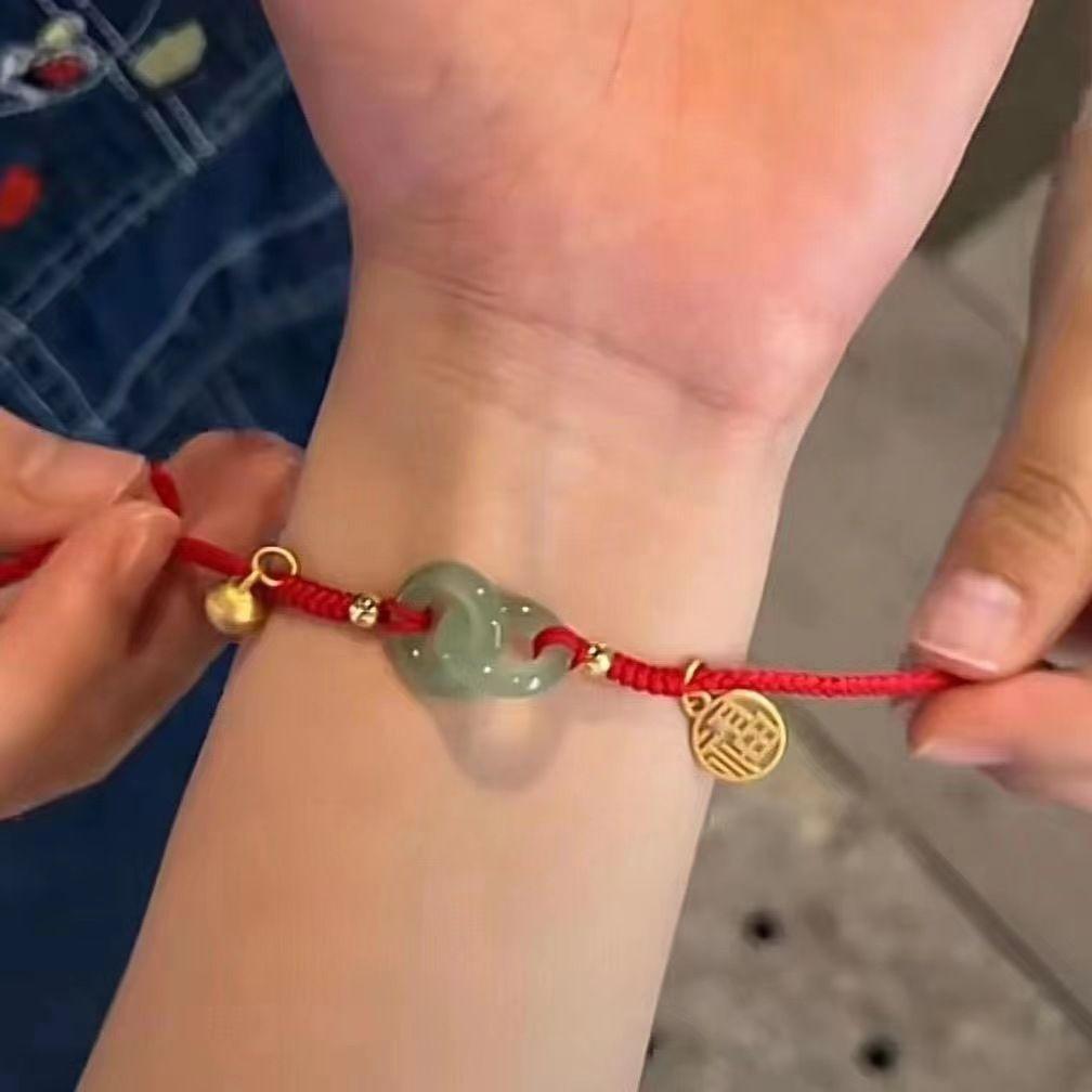 Pulsera con Hebilla de Paz Entrelazada, Cuerda Tejida a Mano, Estilo Ins, Estilo Estudiantil Chino, Regalo Sencillo para Pareja, Estilo Hilo Rojo, Hecho a Mano