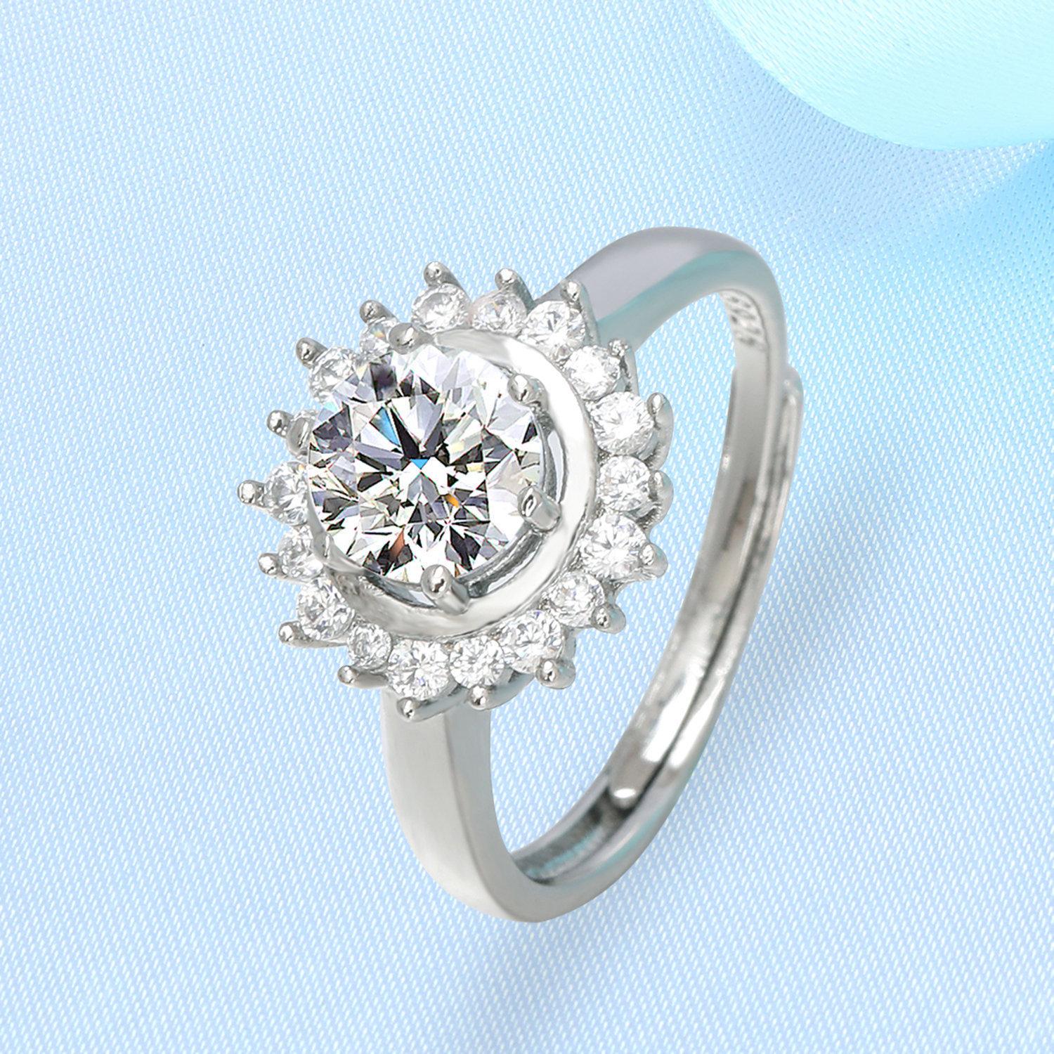 Anillo de moissanita de imitación de platino rojo vivo de una generación para mujer, anillo de bodas de seis garras de 1 quilate al por mayor