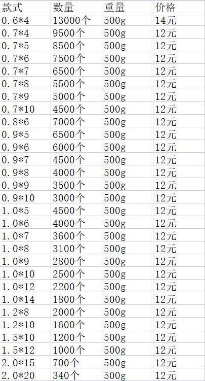 0.5*3 flat ring, 0.5*4 flat ring, 0.6*4 flat ring ( 0.5kg about 13,000 pieces), 0.7*4 flat ring ( 0.5kg about ...