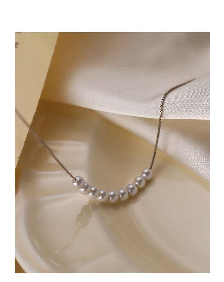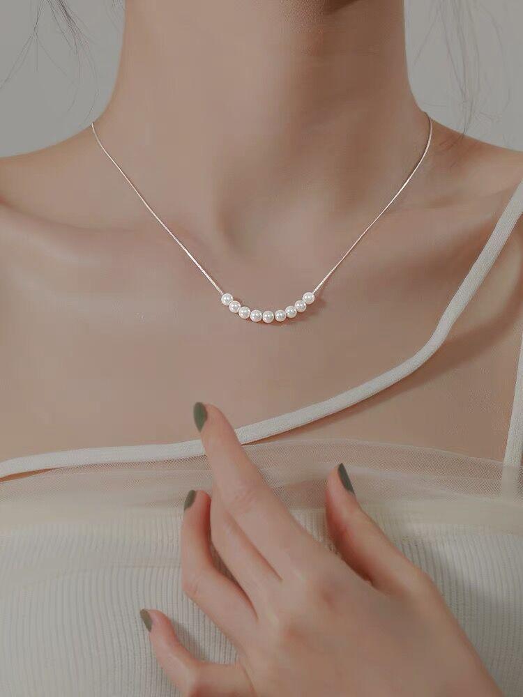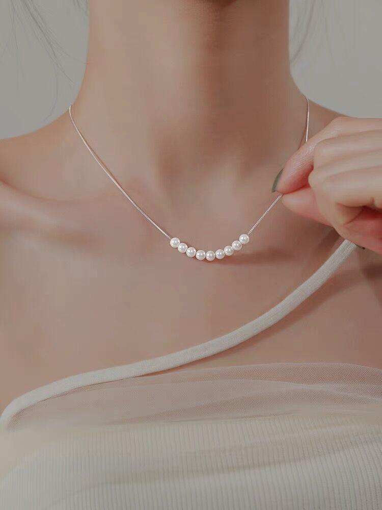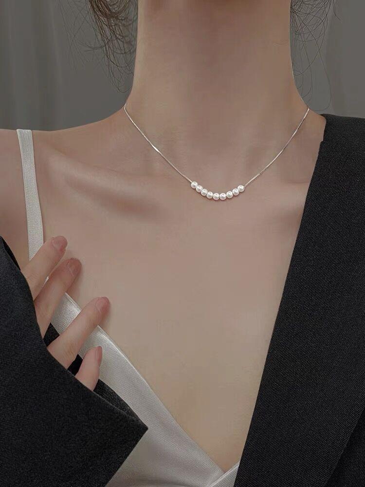 Collar de perlas pequeñas de plata esterlina S925 para mujer, cadena de clavícula de nicho de lujo, simple y ligero, elegante collar de alta calidad que combina con todo, joyería