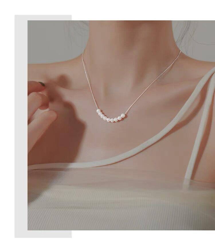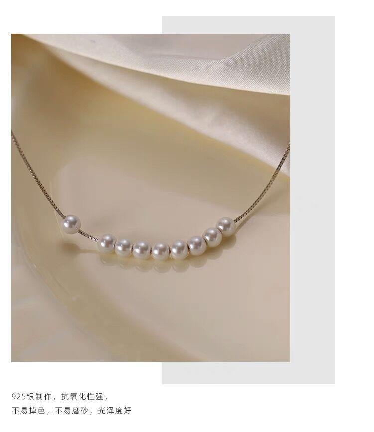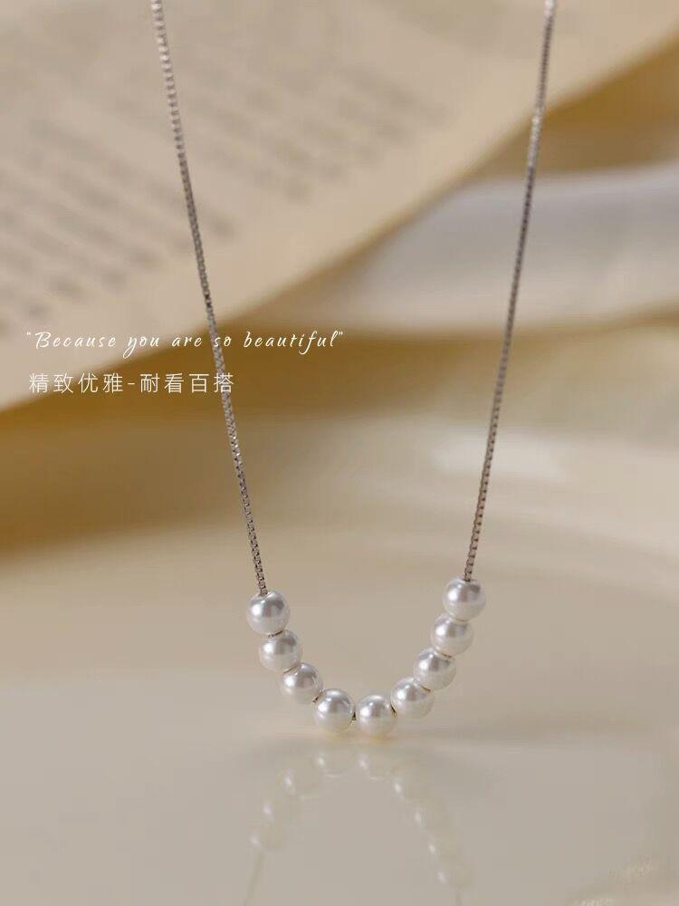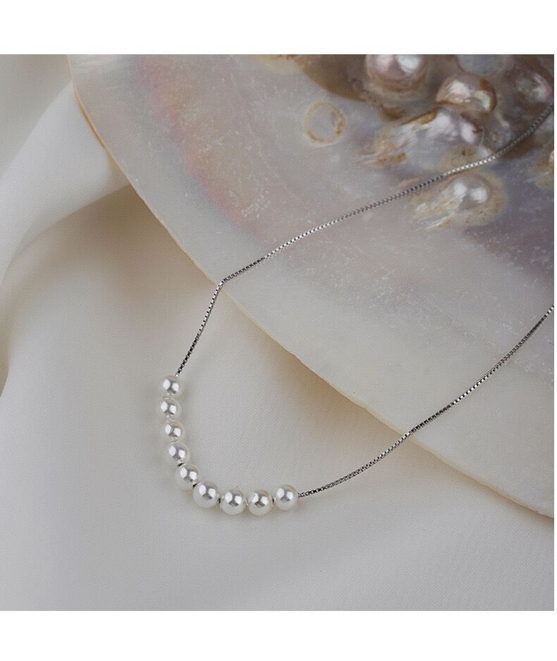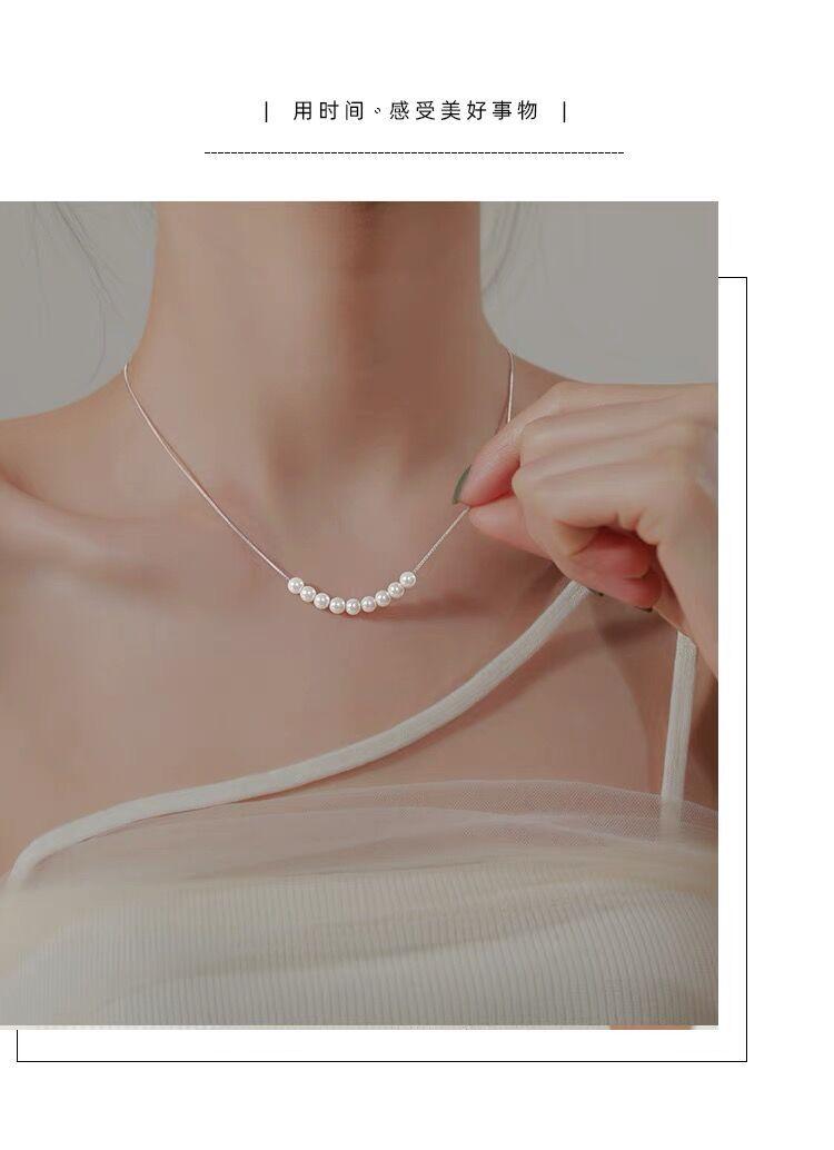 Collar de perlas pequeñas de plata esterlina S925 para mujer, cadena de clavícula de nicho de lujo, simple y ligero, elegante collar de alta calidad que combina con todo, joyería