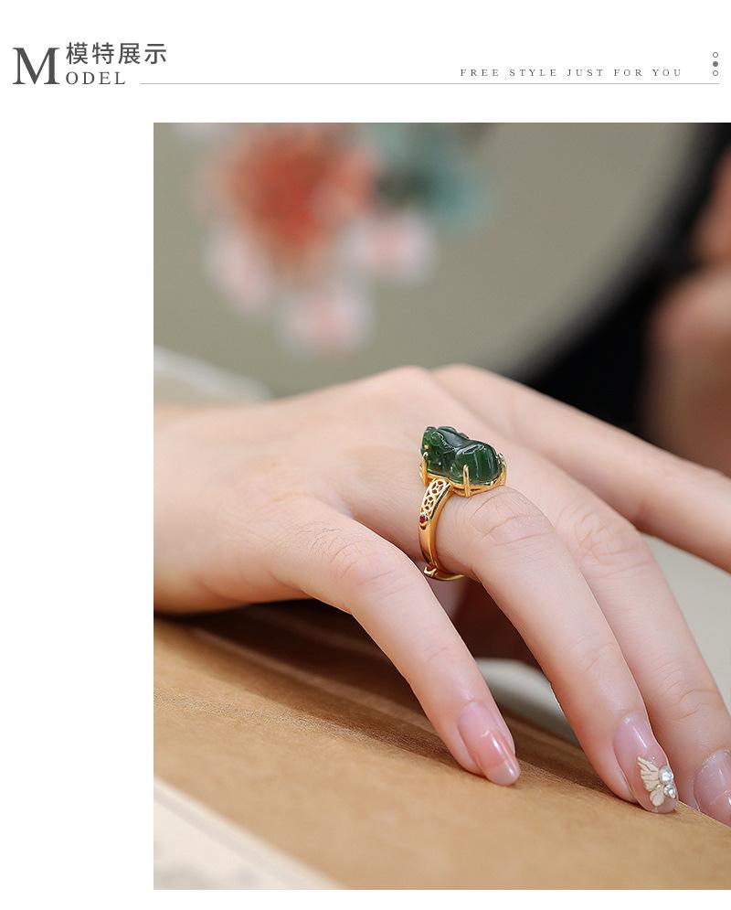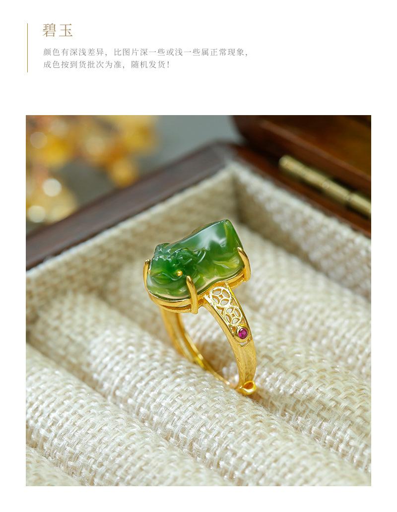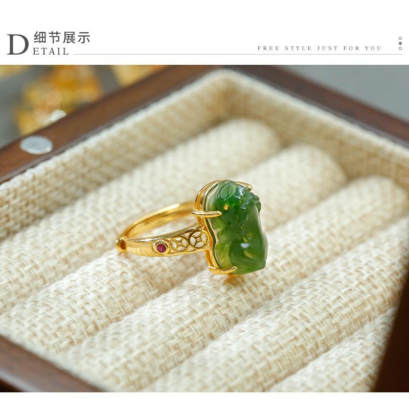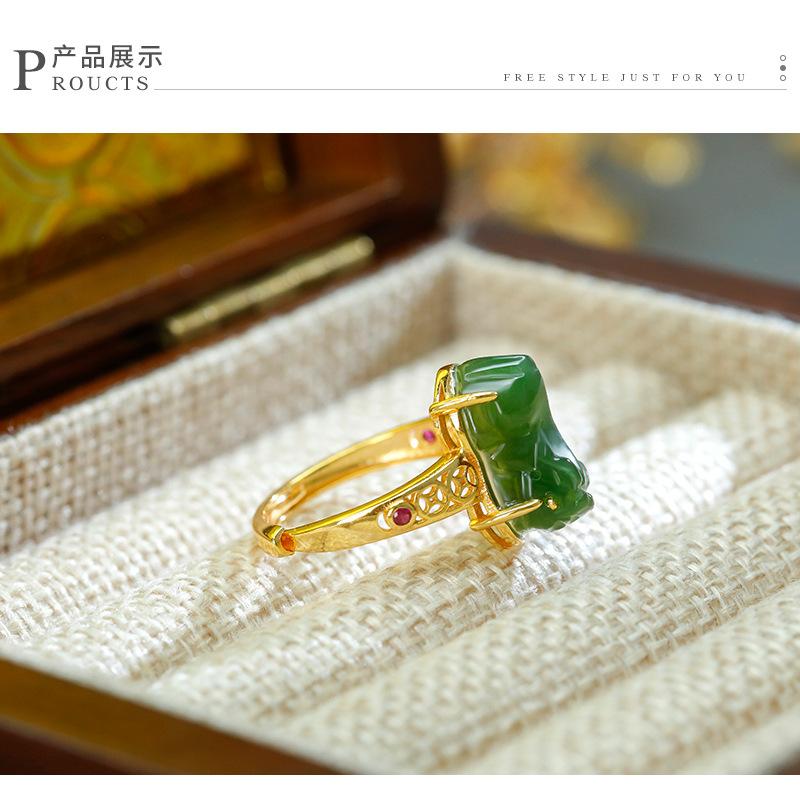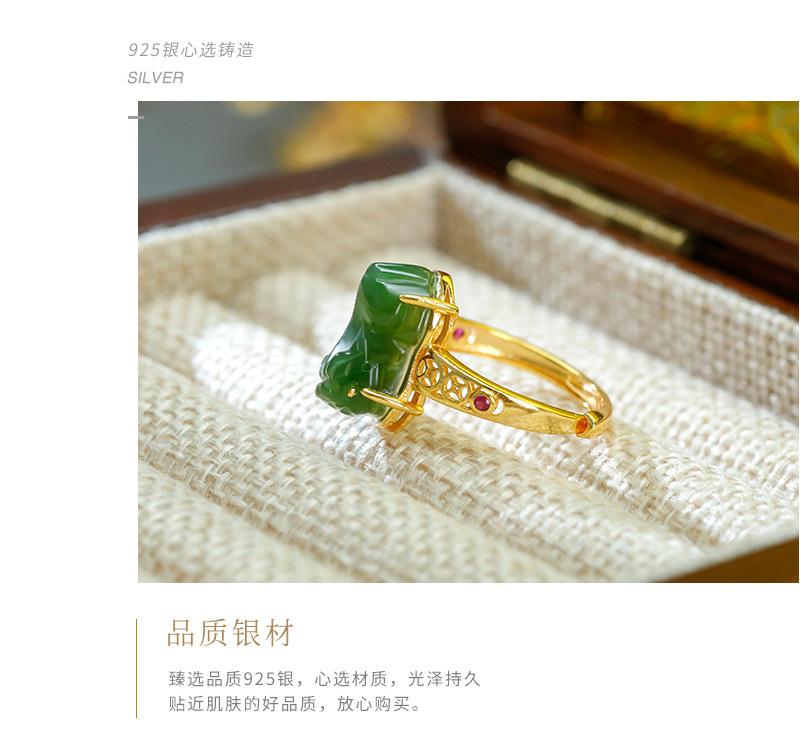 Anillo de jaspe con incrustaciones de plata S925, anillo de tesoro de la suerte, exquisito diseño hueco, simple, clásico, retro, Gong Yan, medio antiguo