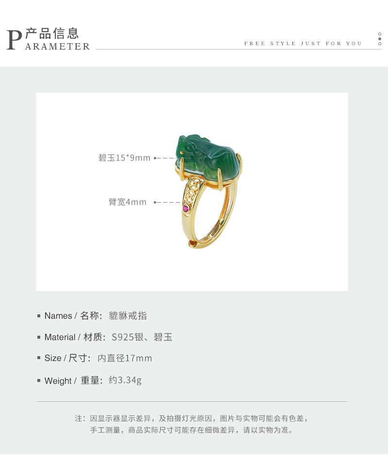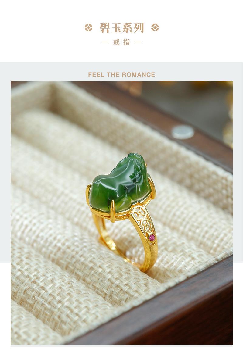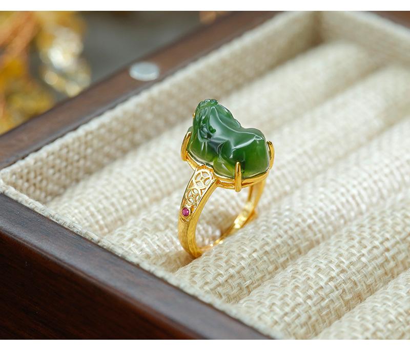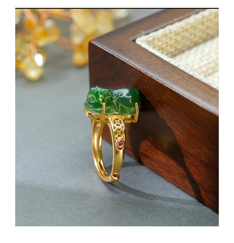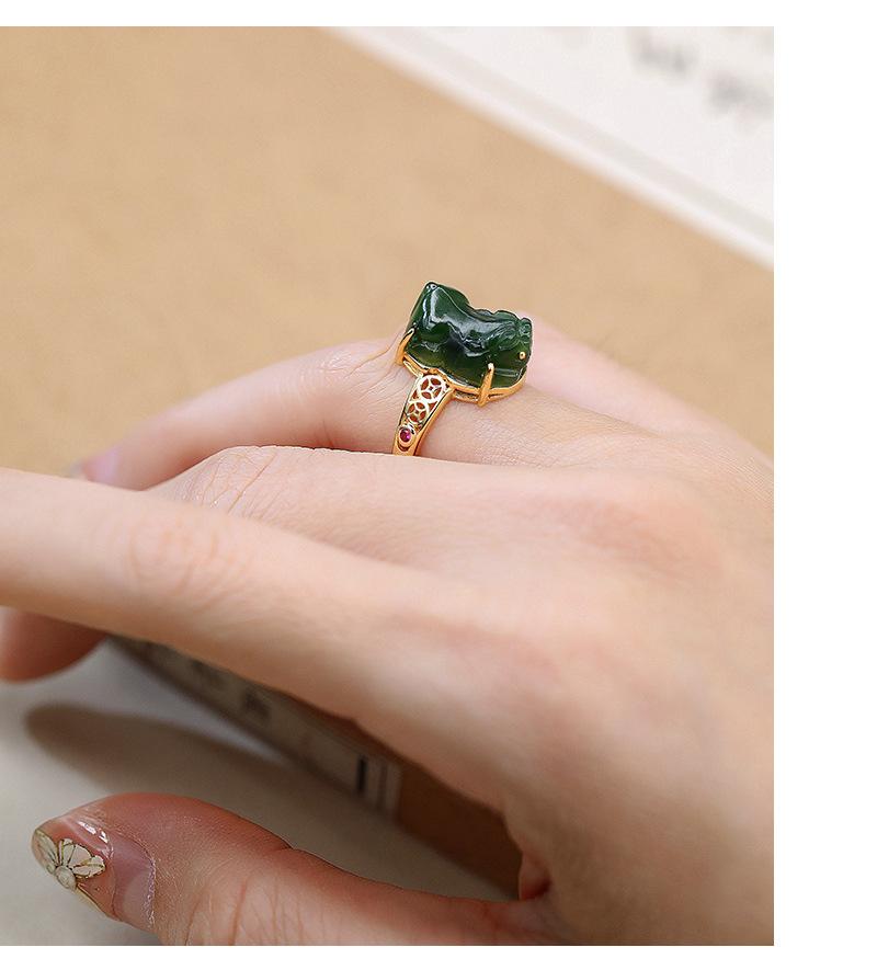 Anillo de jaspe con incrustaciones de plata S925, anillo de tesoro de la suerte, exquisito diseño hueco, simple, clásico, retro, Gong Yan, medio antiguo