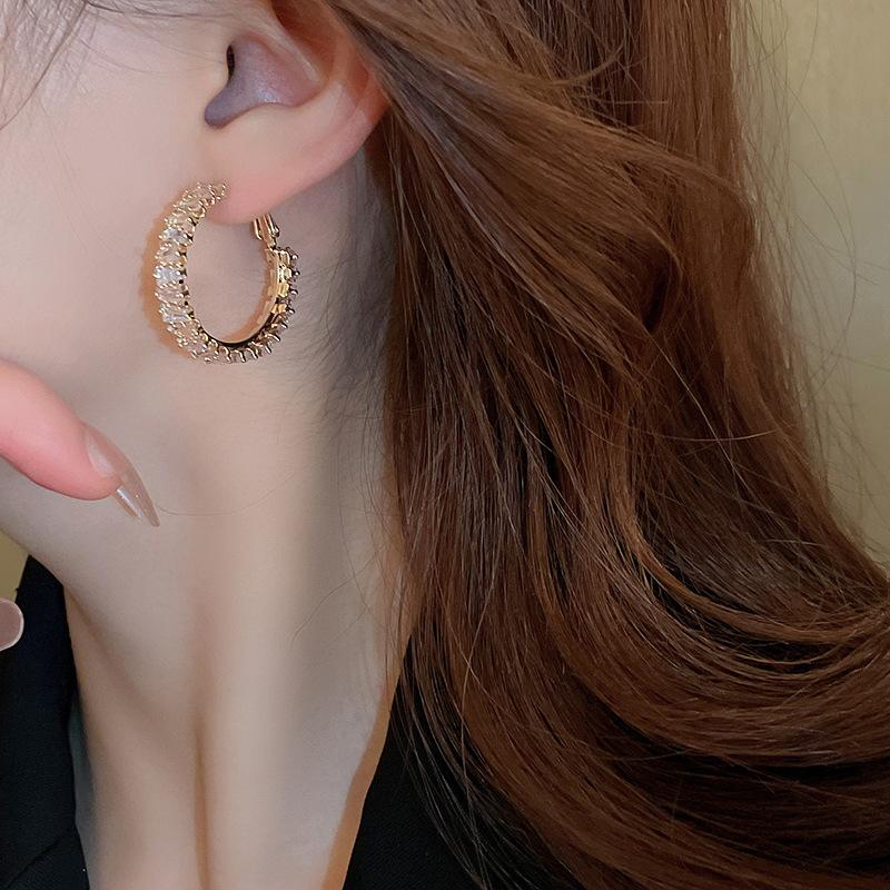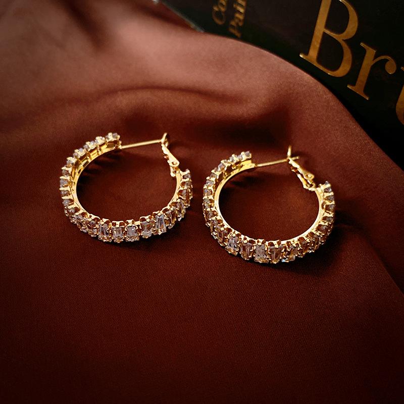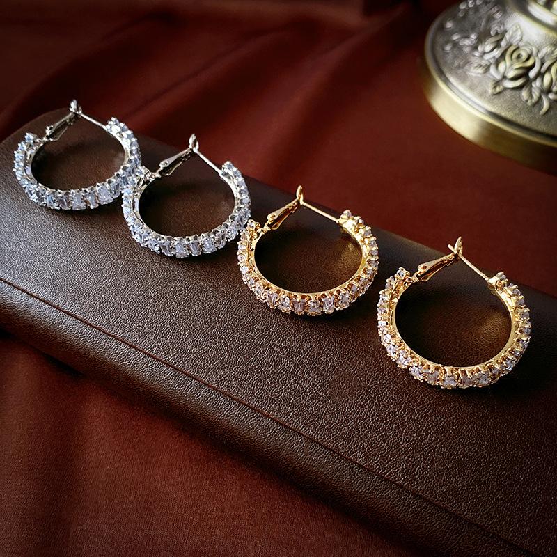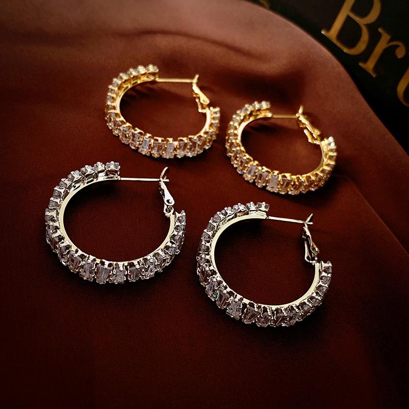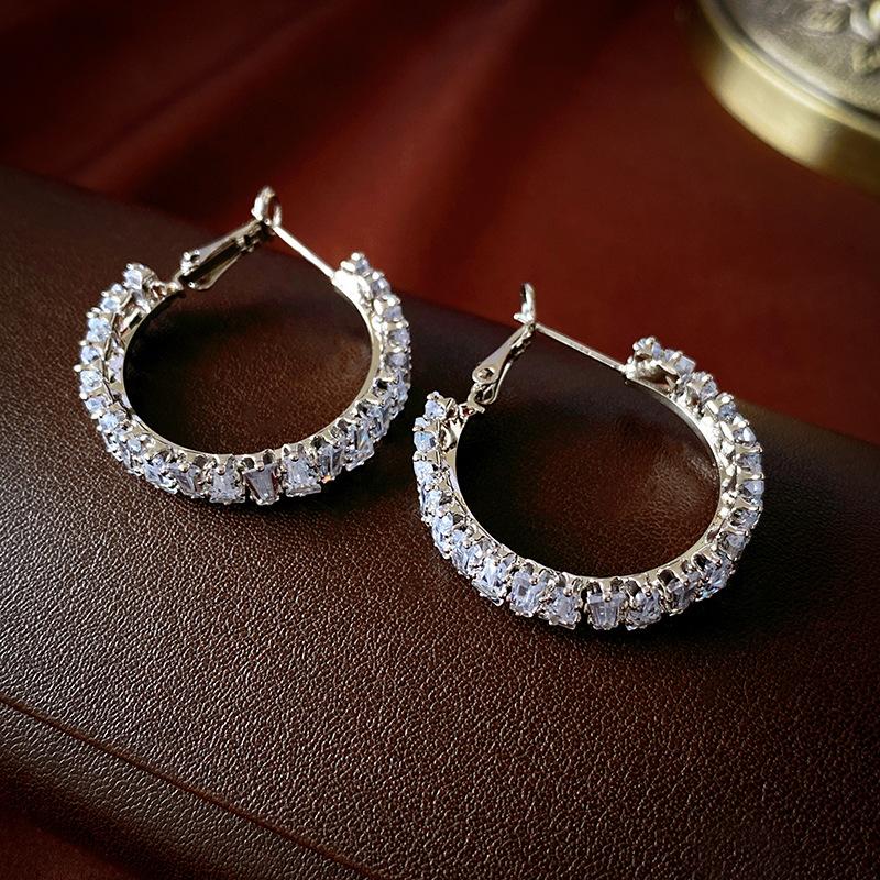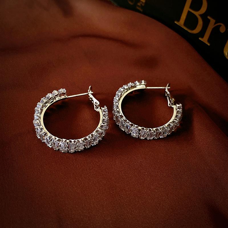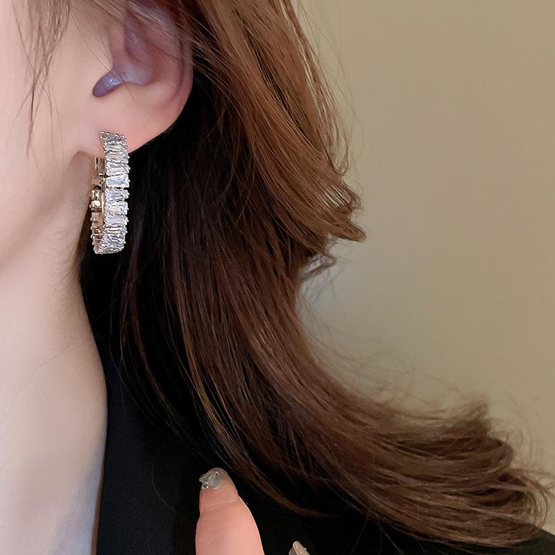 Compra Pendientes de plata con forma de círculo de circonita cuadrada de lujo, ligeros y elegantes, de alta gama, con diseño geométrico, a la moda y exquisitos para mujer. al por mayor en Joom.pro