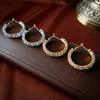 Silver Needle-Golden Zircon Circle Stud Earrings, Silver needle-silver zircon circle earrings