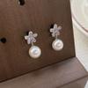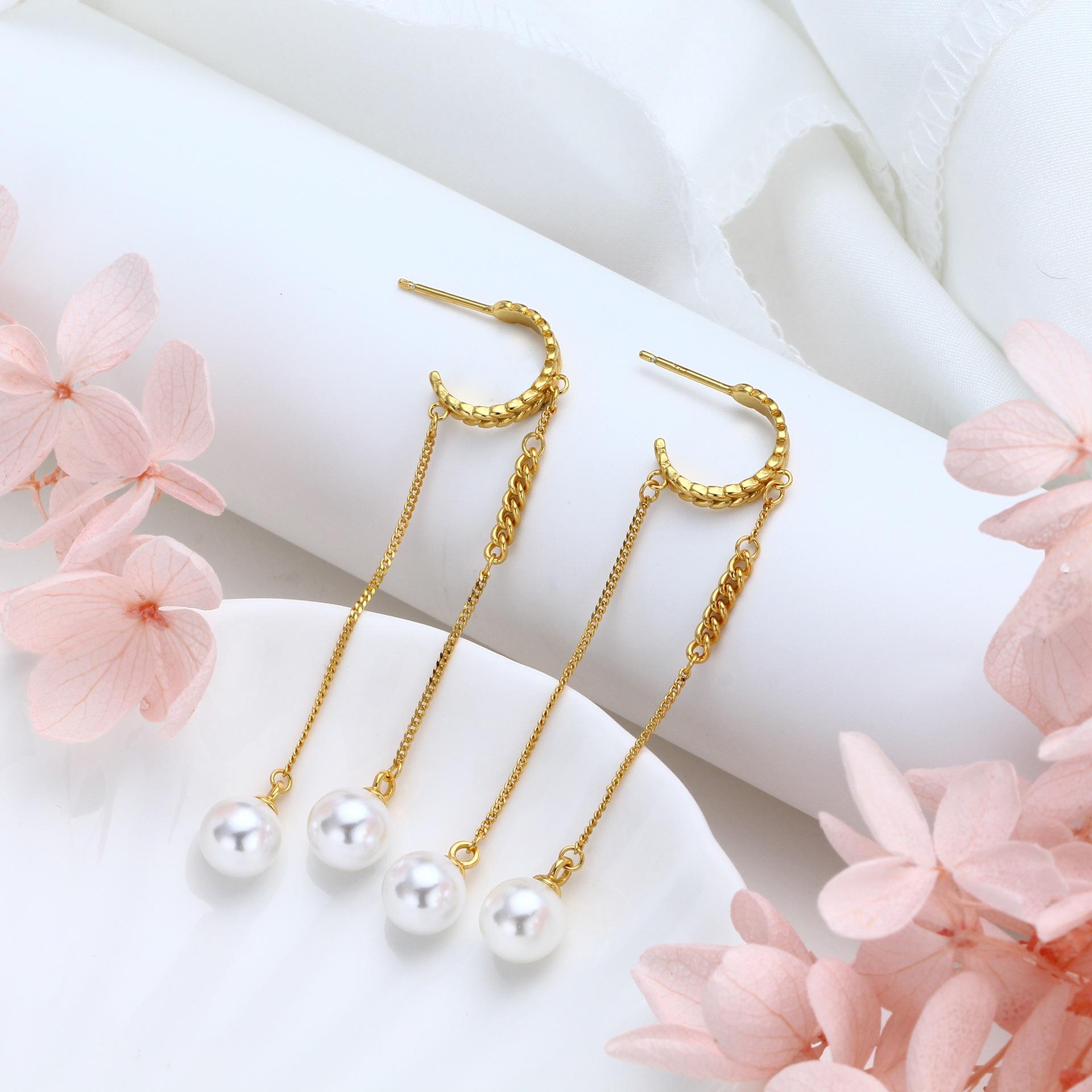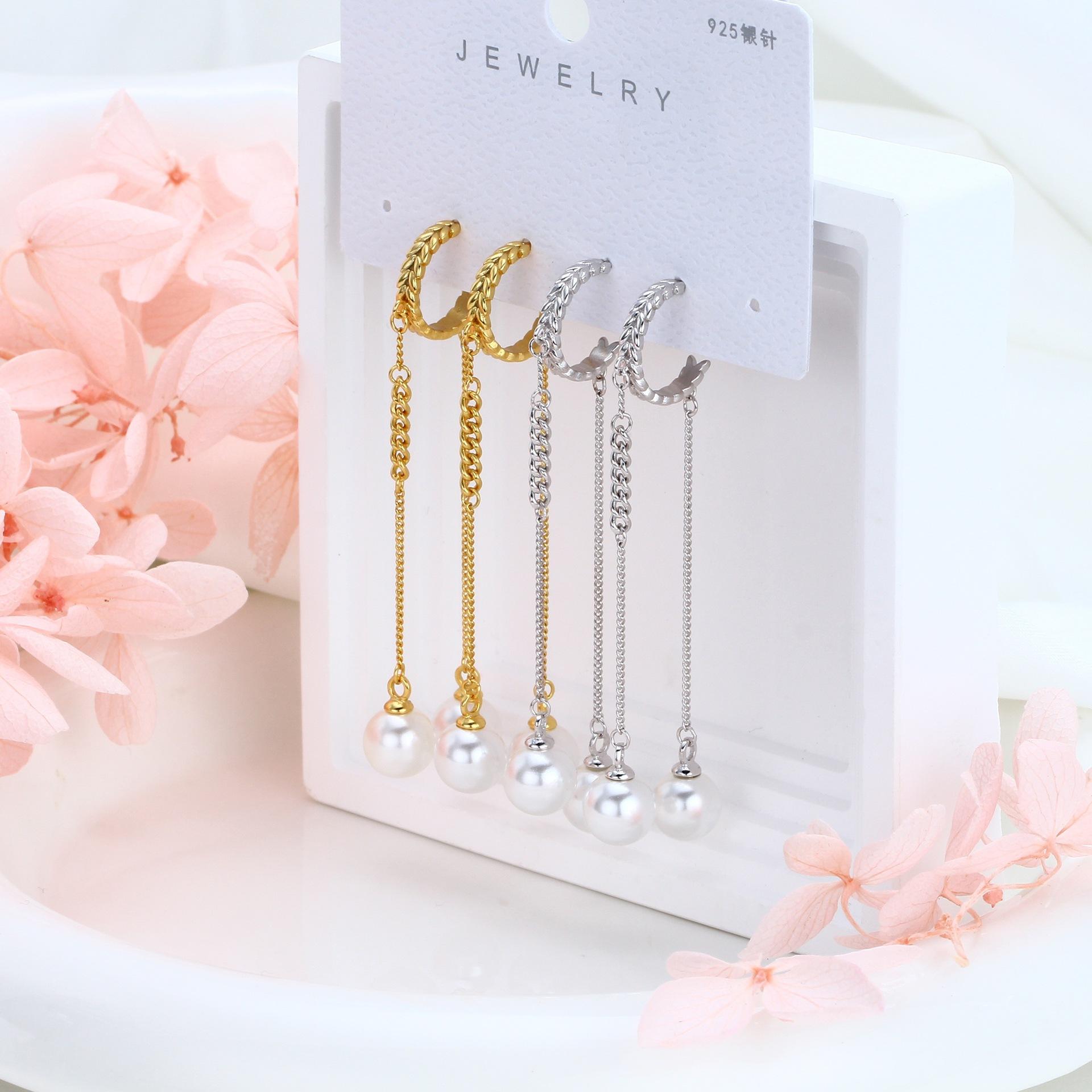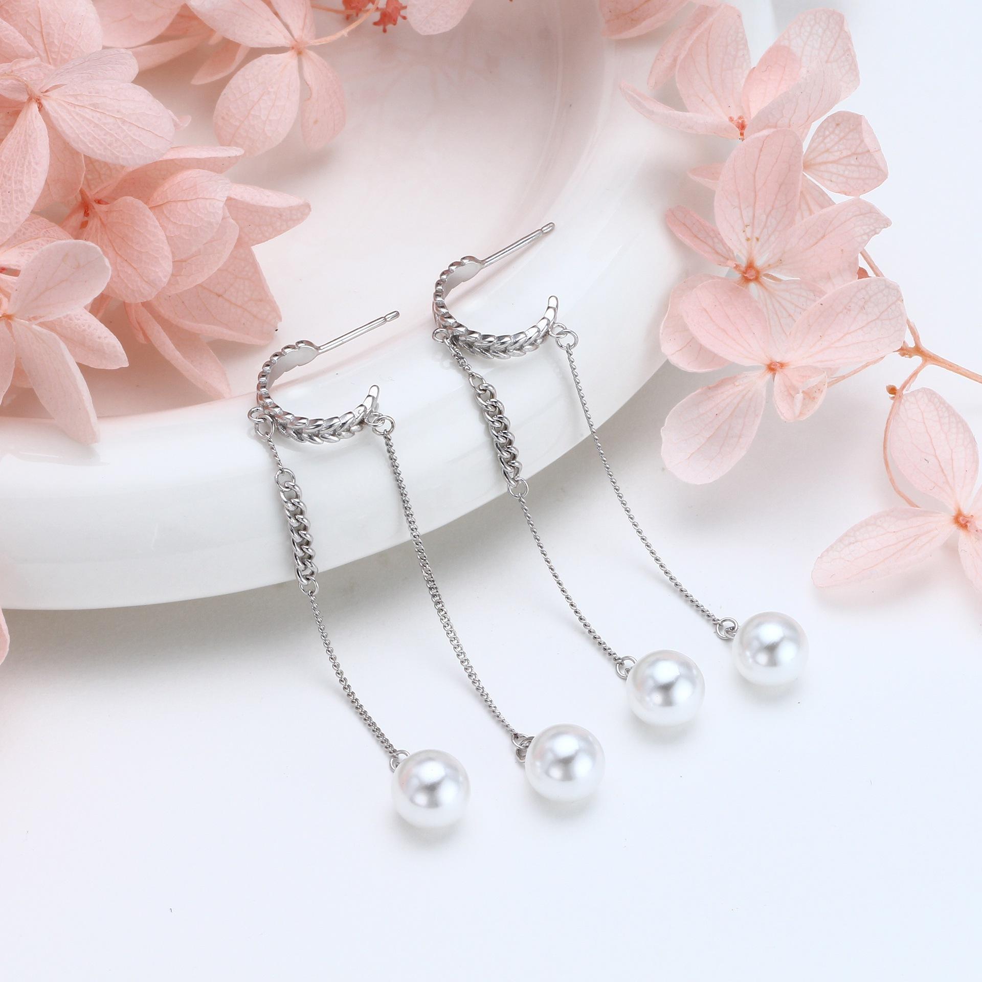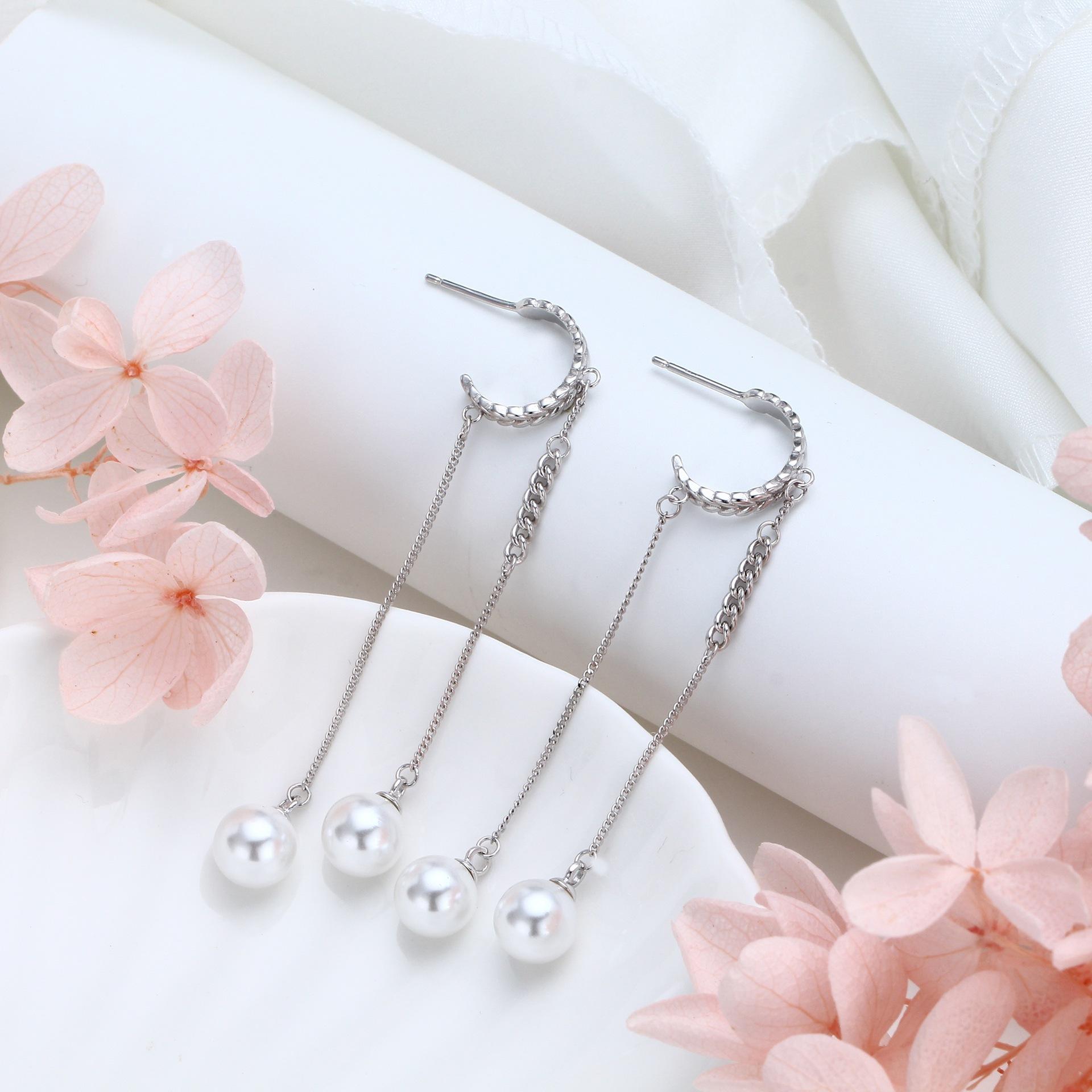 Pendientes de plata de ley S925 de comercio exterior, elegantes, largos y dulces, con perlas, ligeros, de lujo, estilo hada, frescos, para orejas tipo botón, joyería para orejas