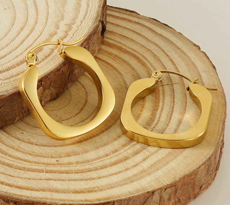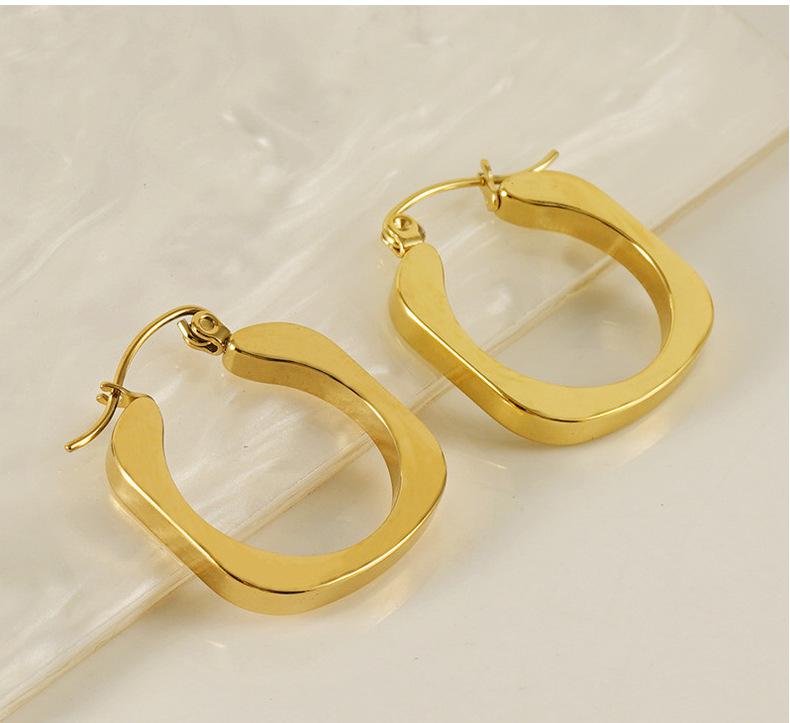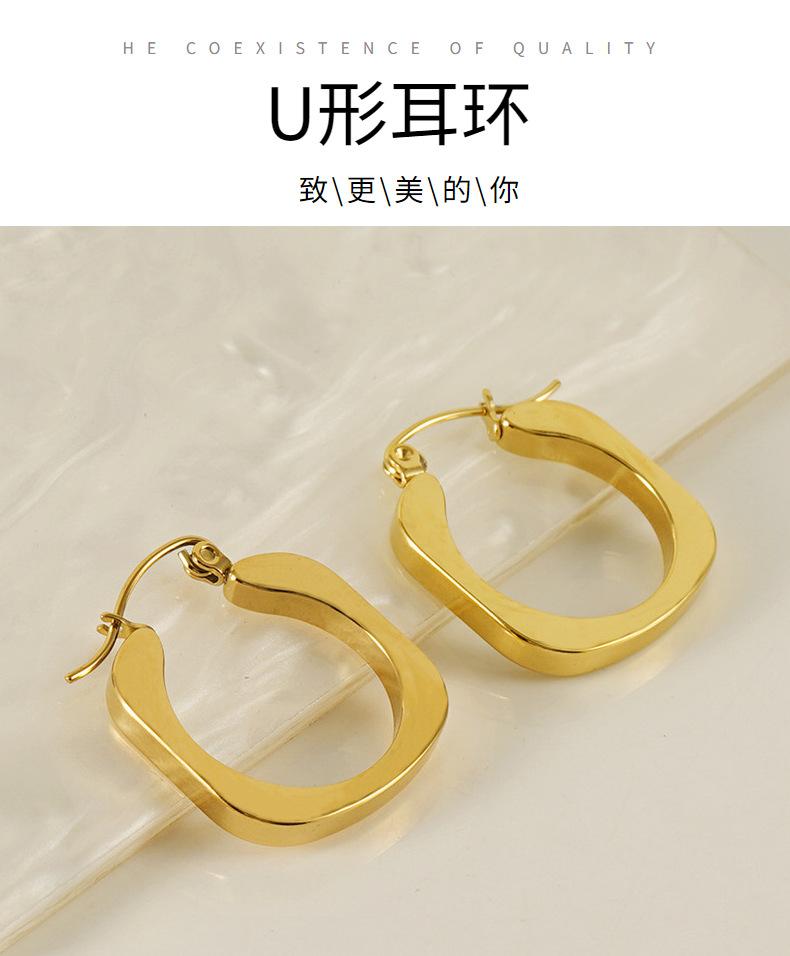 Compra Pendientes en forma de U de acero de titanio de estilo europeo y americano transfronterizos, pendientes grandes cuadrados de 18 quilates para mujer, pendientes de alta calidad, pendientes exagerados de acero inoxidable al por mayor en Joom.pro