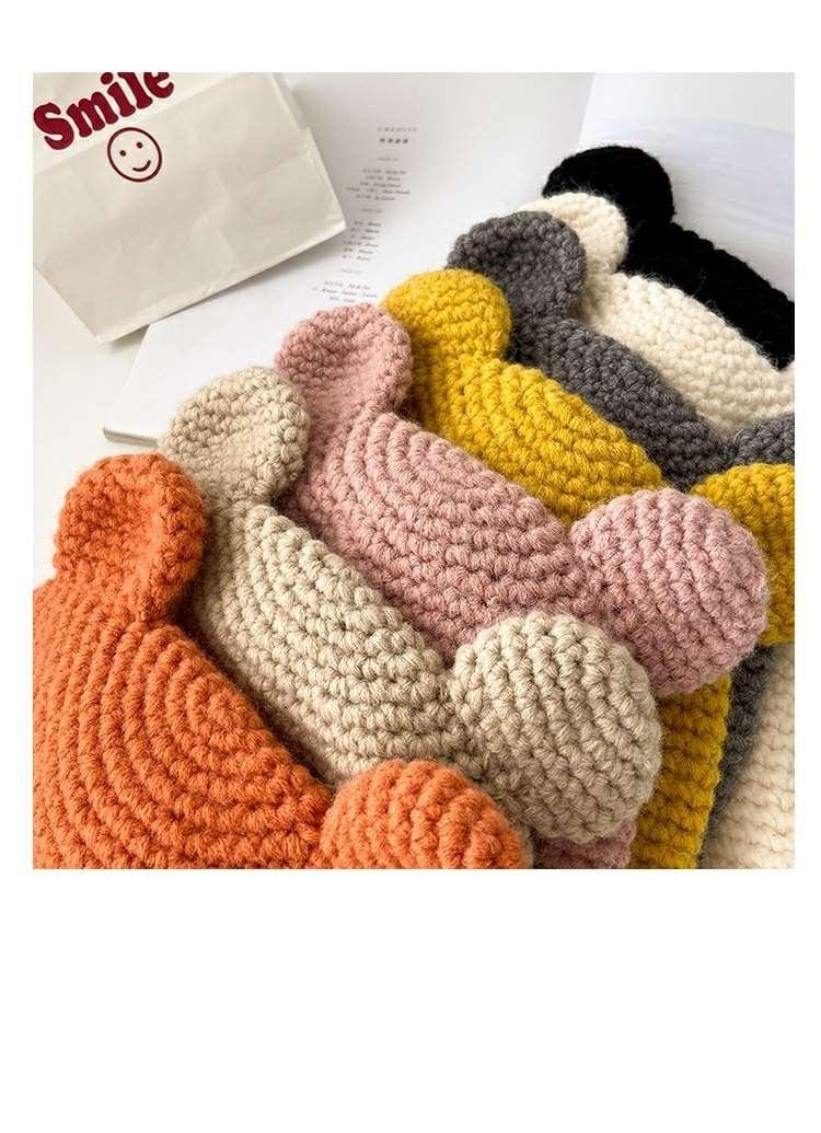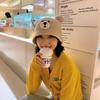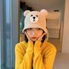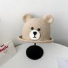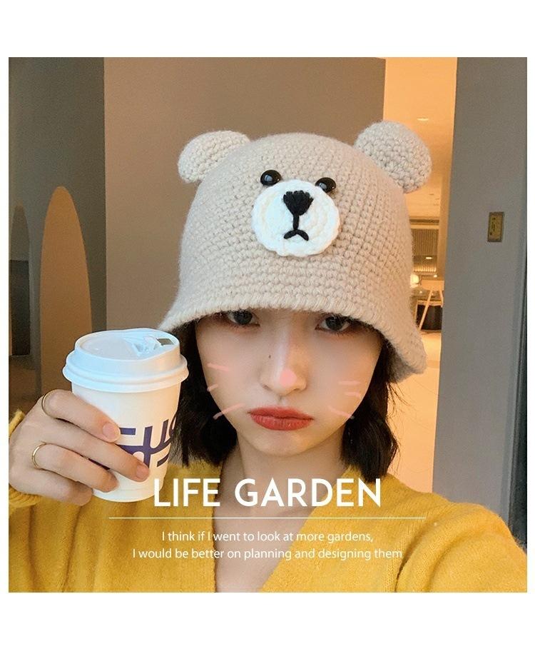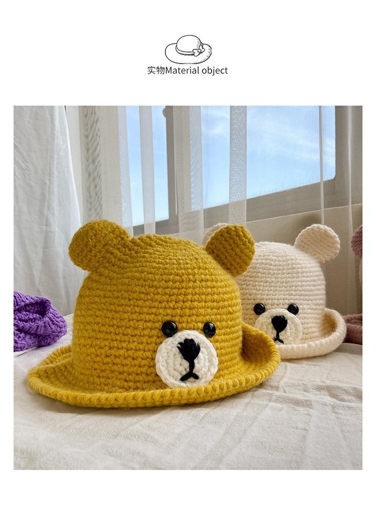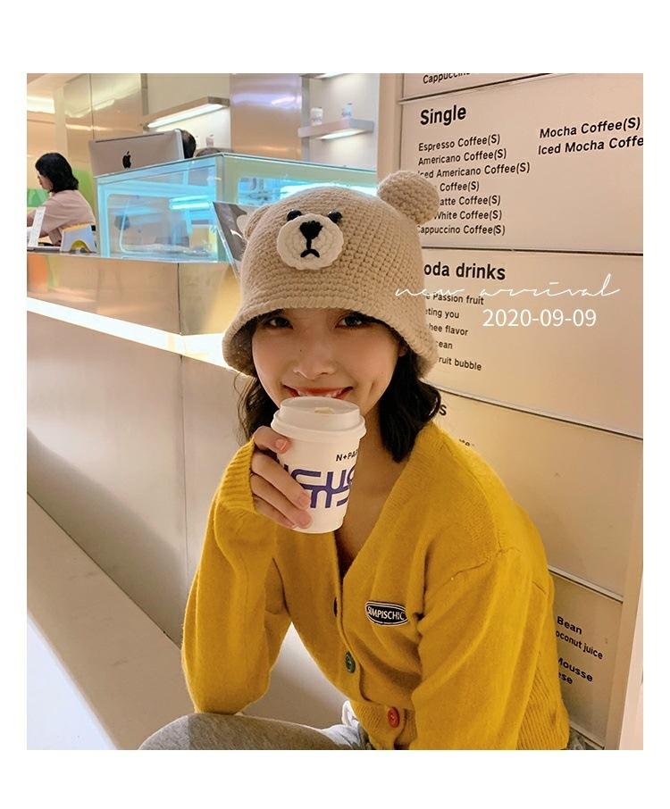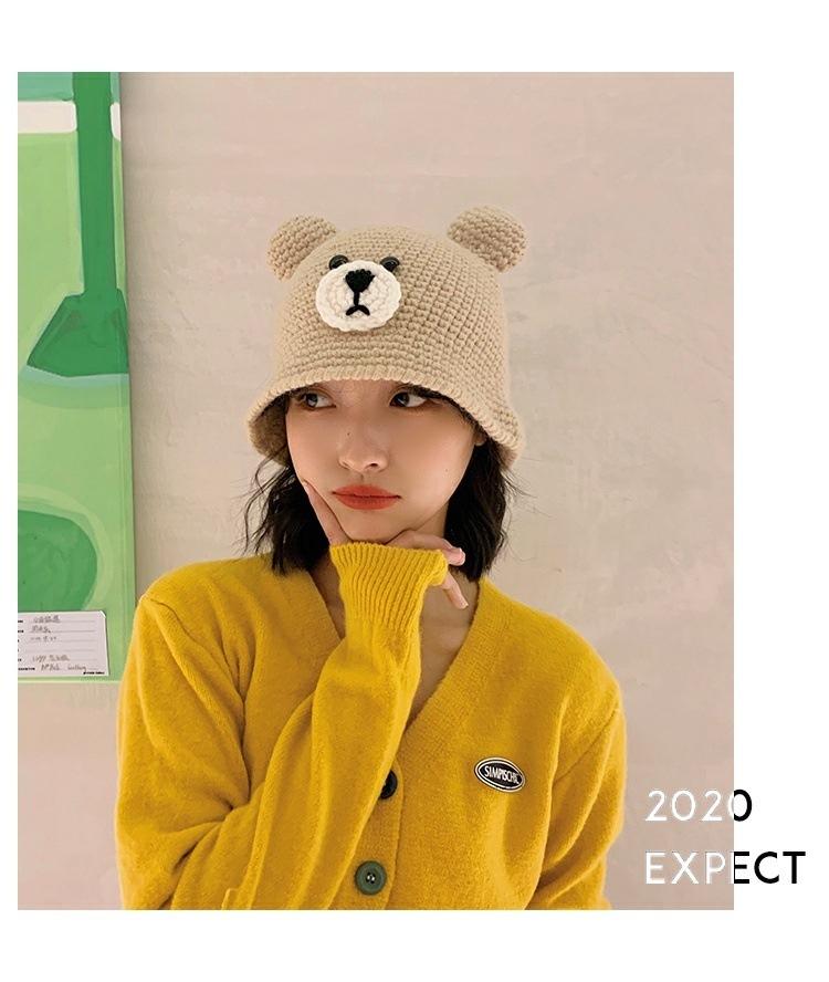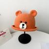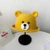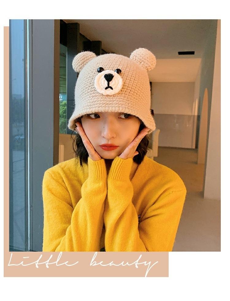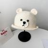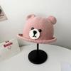 Sombrero de pescador de oso tejido para mujer otoño e invierno estilo coreano versátil estilo japonés lindo sombrero de lana con orejas sombrero de cubeta pequeño que hace que la cara se vea pequeña