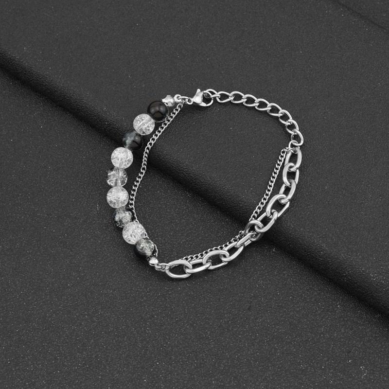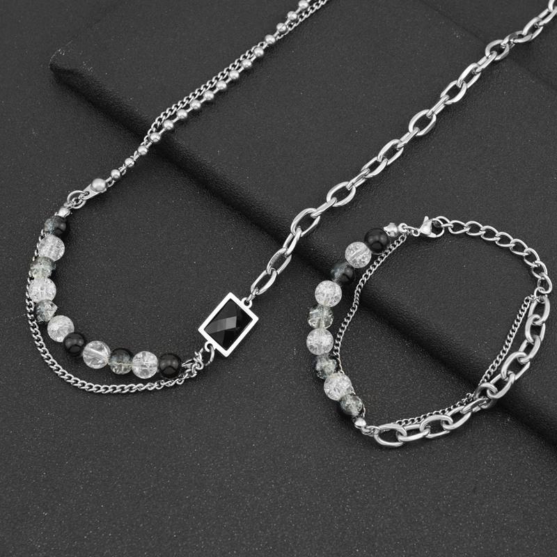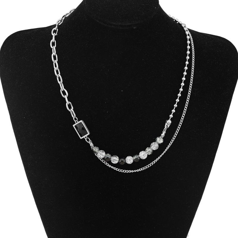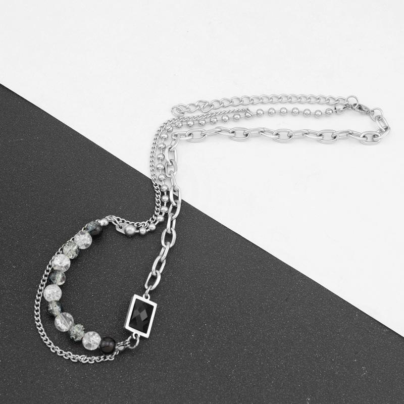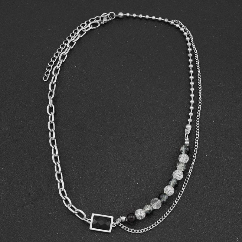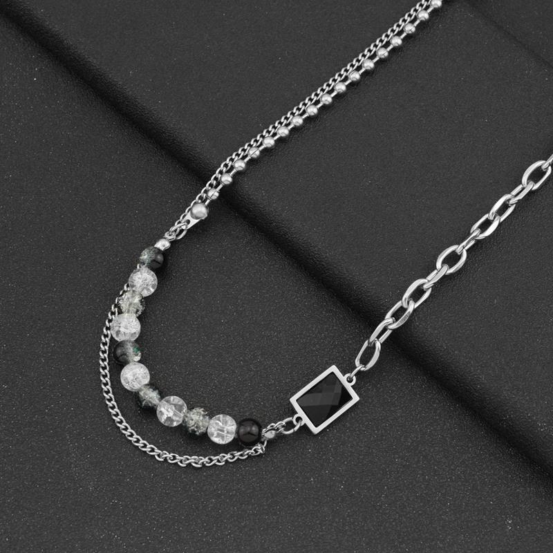 Tamaño: Longitud del collar 50+10CM 18+5CM Ancho de cadena cruzada 7MM cuentasAncho de cadena 4MM delgadoAncho de cadena 2.7MM
