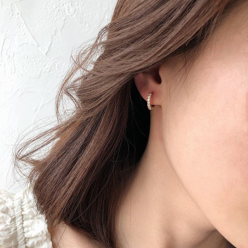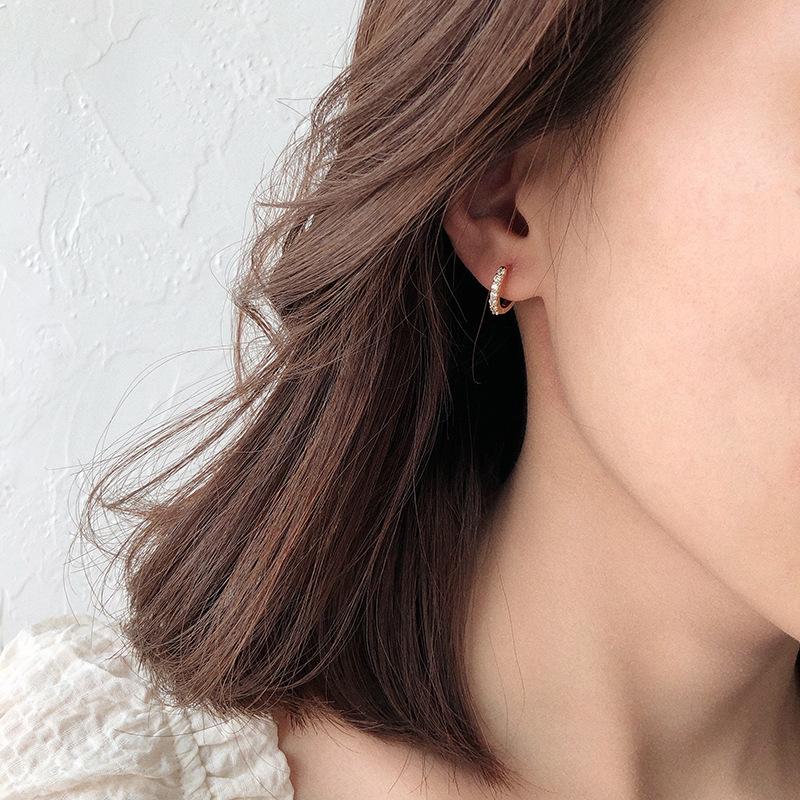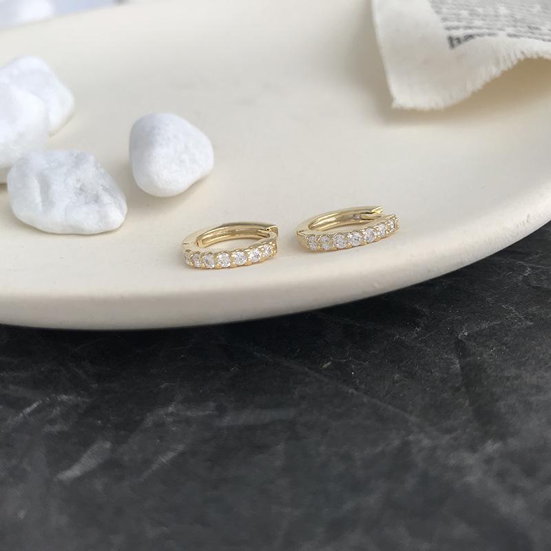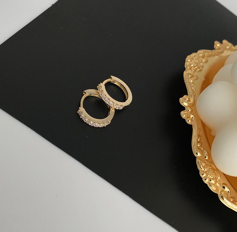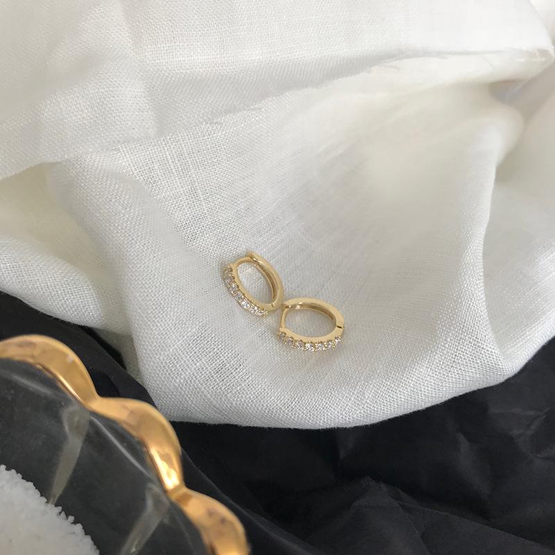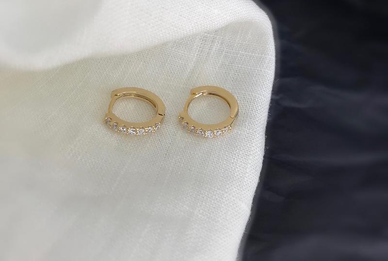 Compra Anillo de plata S925 con pendientes de diamantes, nuevo y elegante anillo de círculo pequeño con incrustaciones de diamantes dorados, pendientes con hebilla de oreja de anillo simple al por mayor en Joom.pro