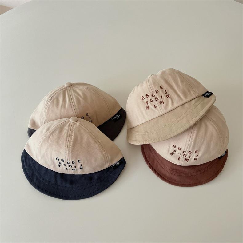 Blue-Gray OHE ABC three-row literal sunshade big brim hat +5-24 months (42-50cm) + adjustable