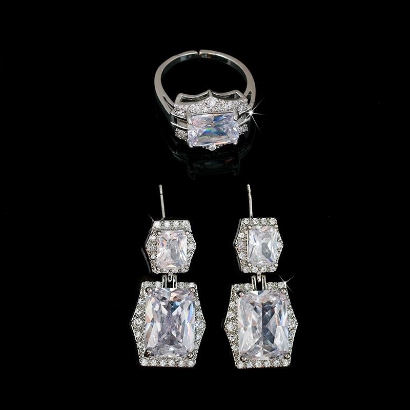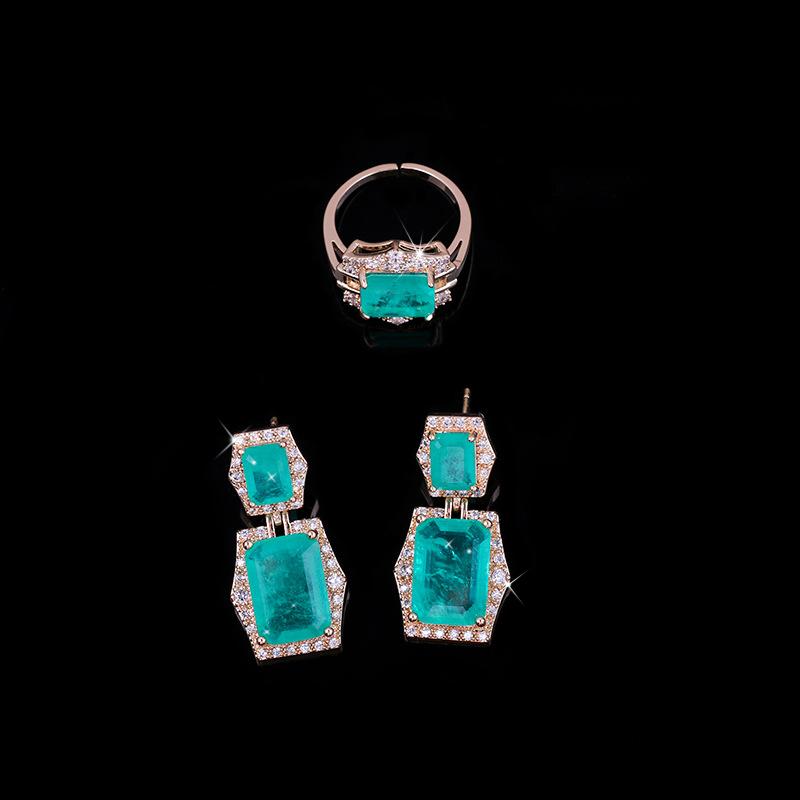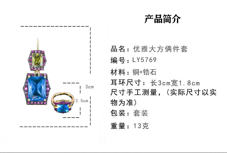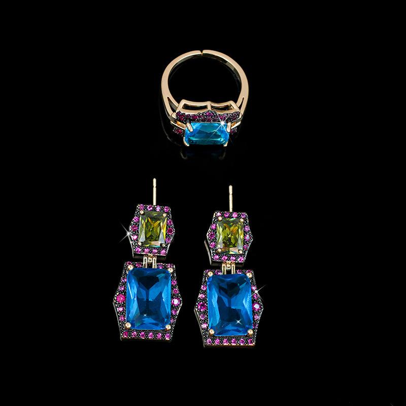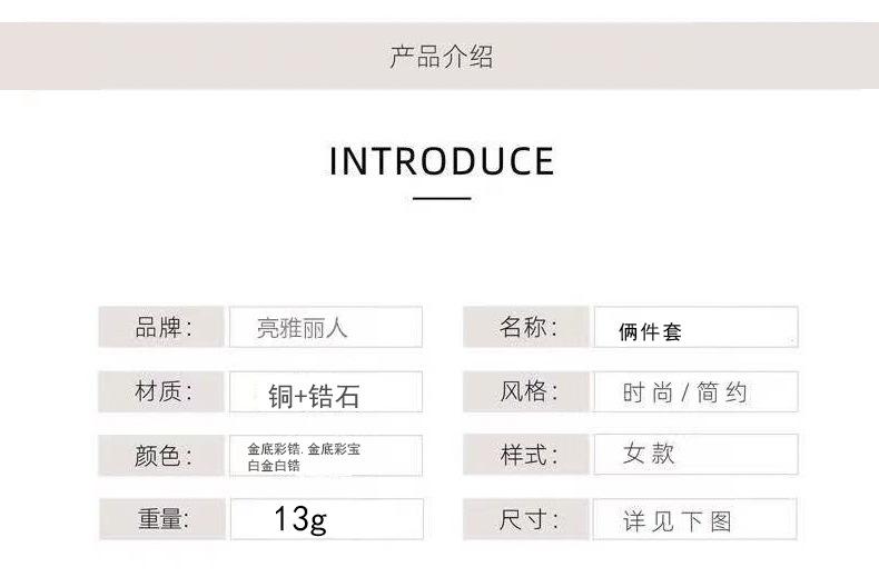Gold bottom color zirconium earrings, Gold bottom color treasure earrings, Gold bottom color zirconium ring, P...