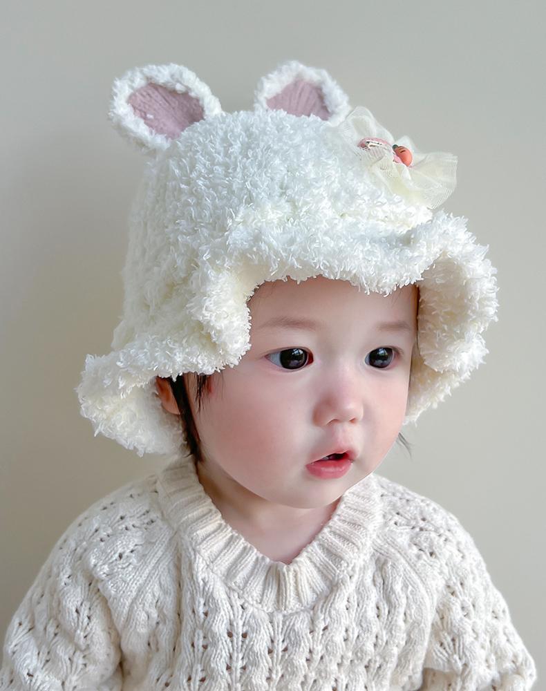 Gorro de pescador grueso para bebé niña, gorro de lana de invierno, estilo princesa coreano, para otoño e invierno