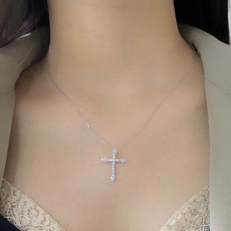 | Collar cuadrado de diamantes para mujer, cadena de clavícula con baño de hadas, colgante cuadrado de diamantes en plata de ley S925, simple y elegante, tendencia de temperamento de celebridades de Internet. |