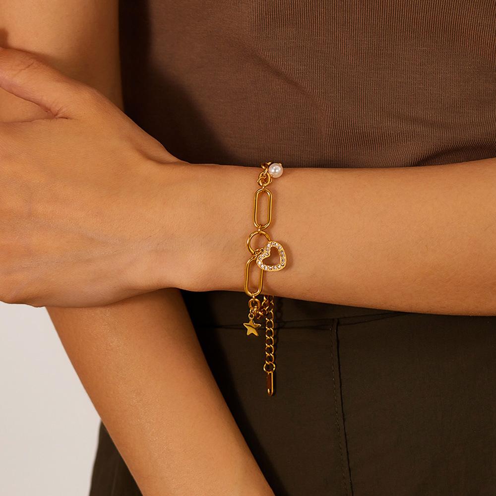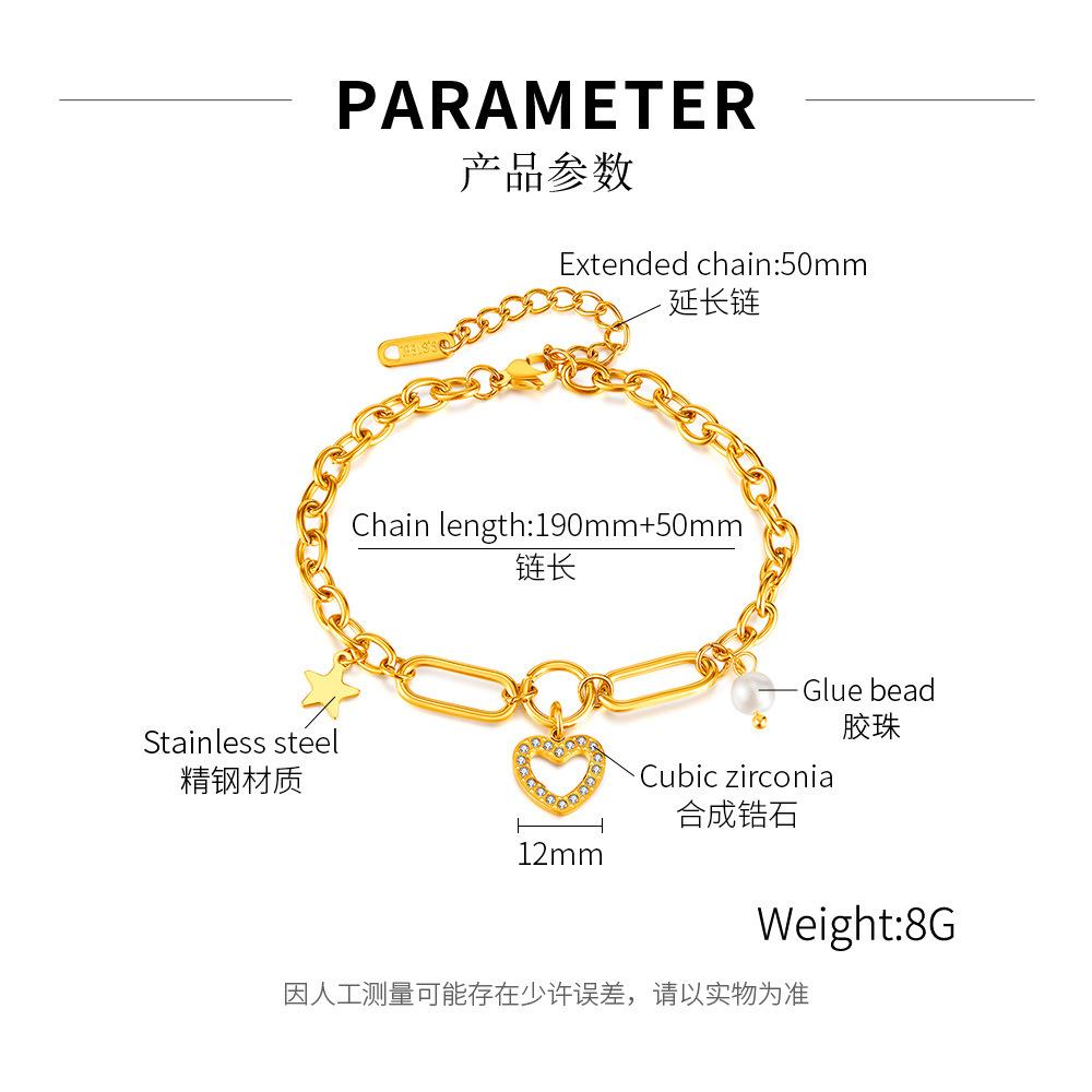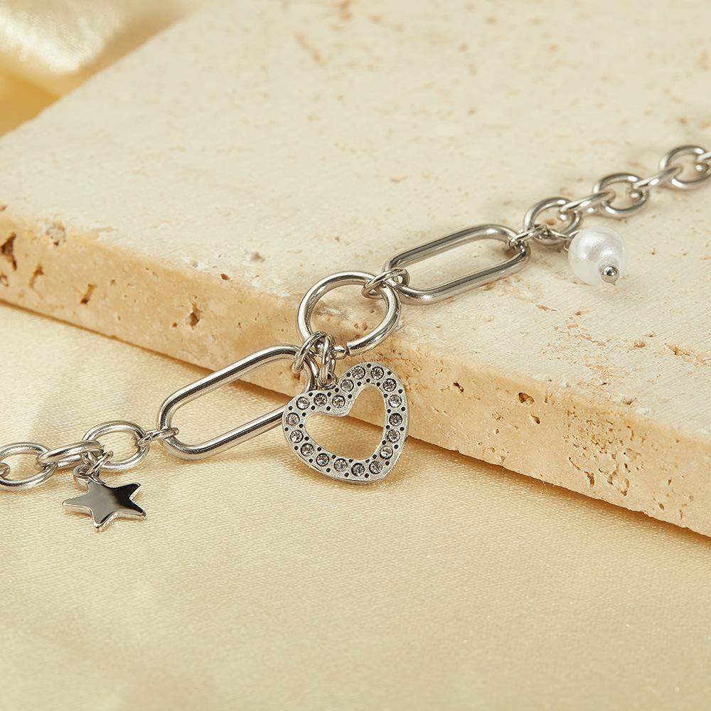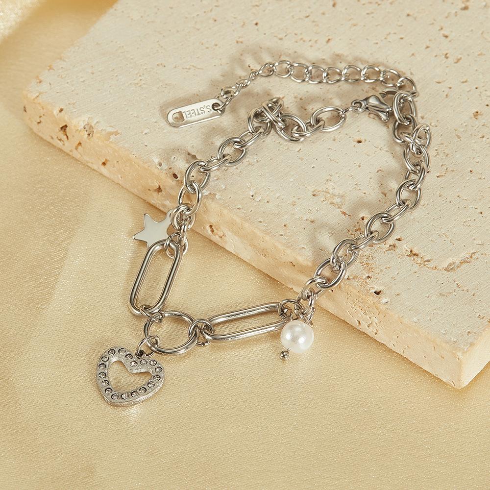 Pulsera de acero de titanio de moda al por mayor de joyería transfronteriza Joker estrellas colgante de perlas diamante temperamento de lujo ligero joyería de amor