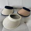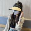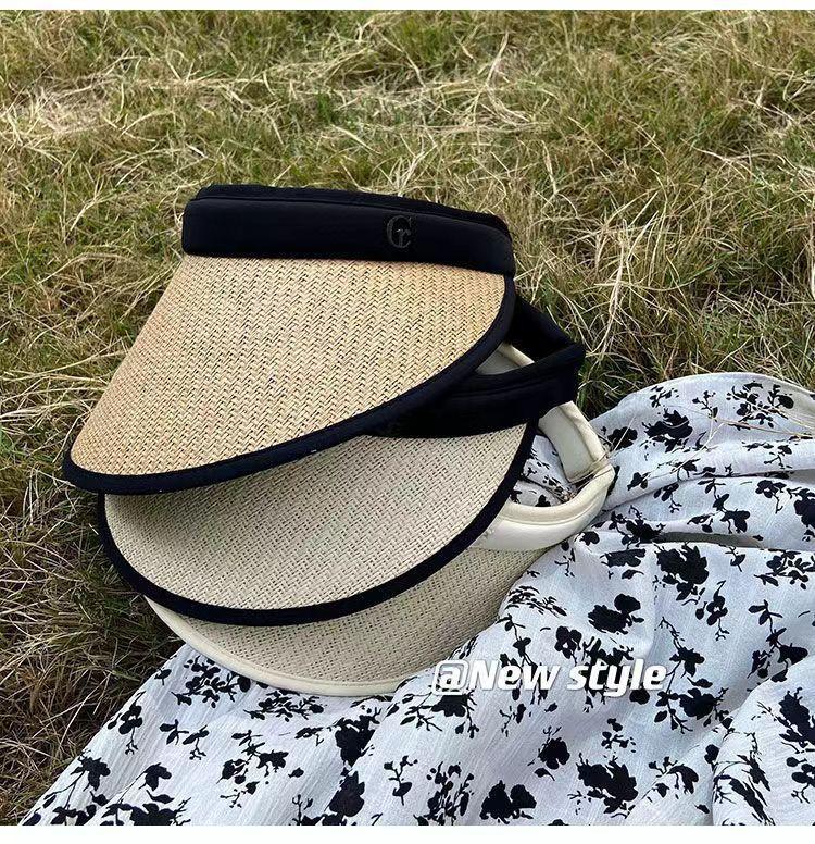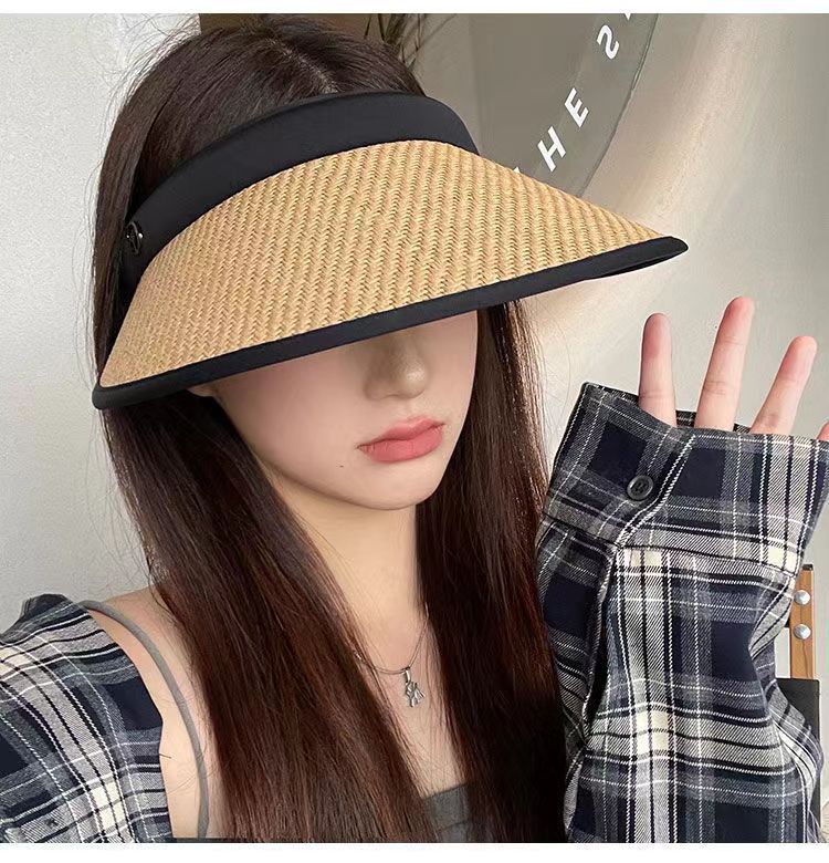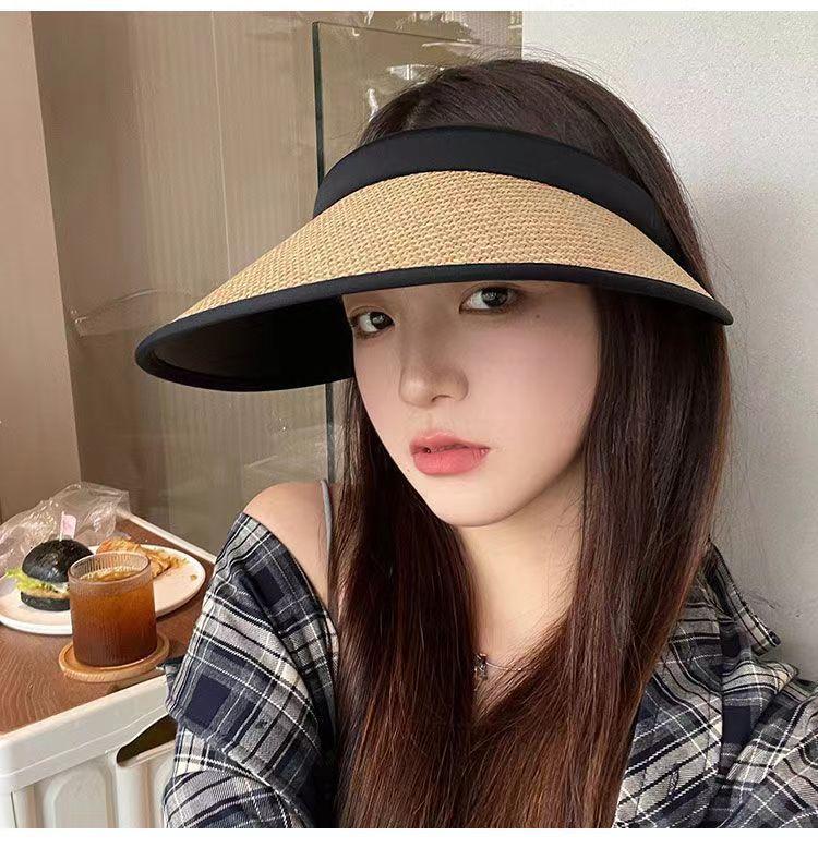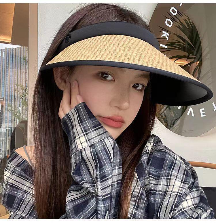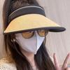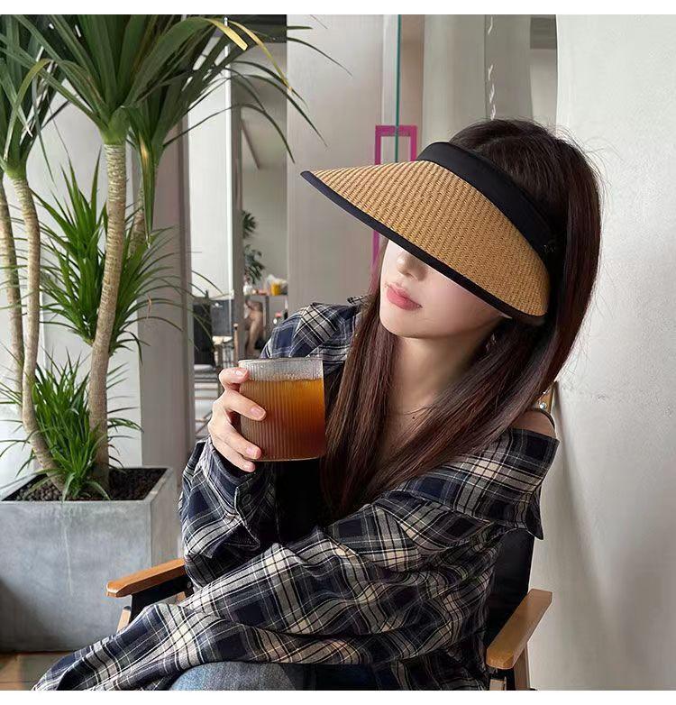 Sombrero de Sol de Copa Vacía para Mujer, Cubierta Facial de Plástico Negro, Sombrero de Sol de Paja de Verano, Sombrero de Paja para Ciclismo, Sombrero de Sol Plegable a Prueba de Viento