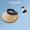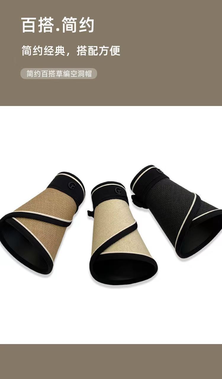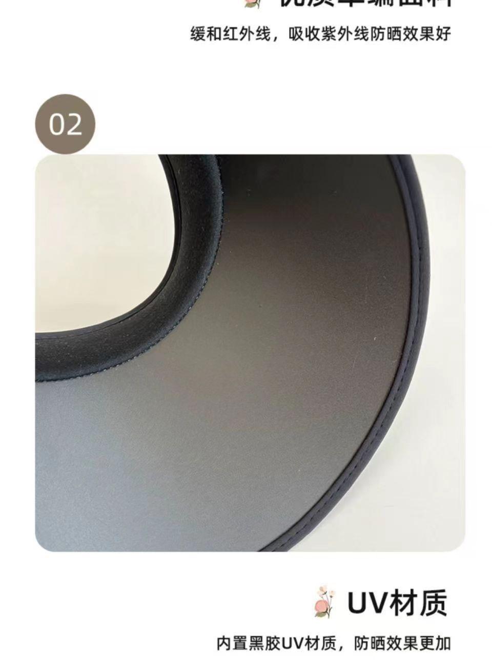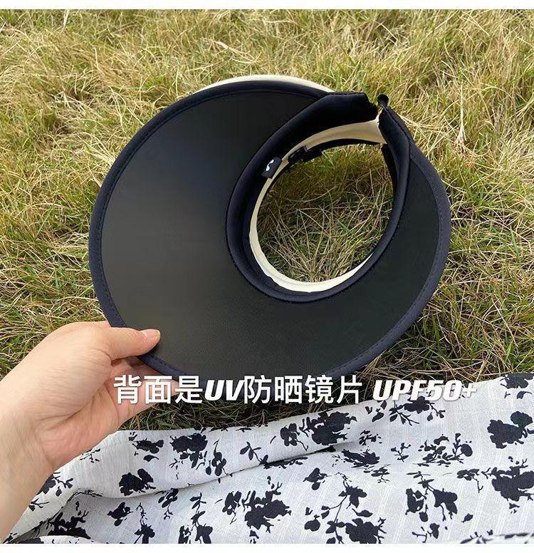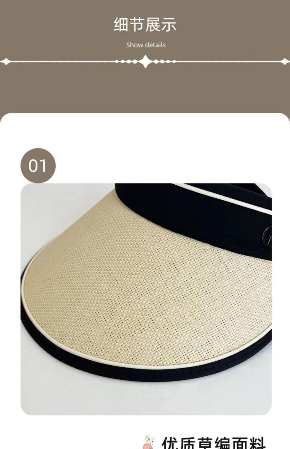 Sombrero de Sol de Copa Vacía para Mujer, Cubierta Facial de Plástico Negro, Sombrero de Sol de Paja de Verano, Sombrero de Paja para Ciclismo, Sombrero de Sol Plegable a Prueba de Viento