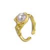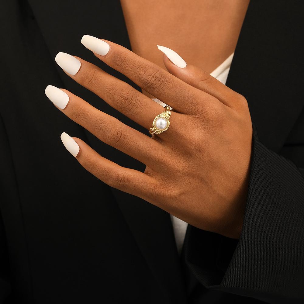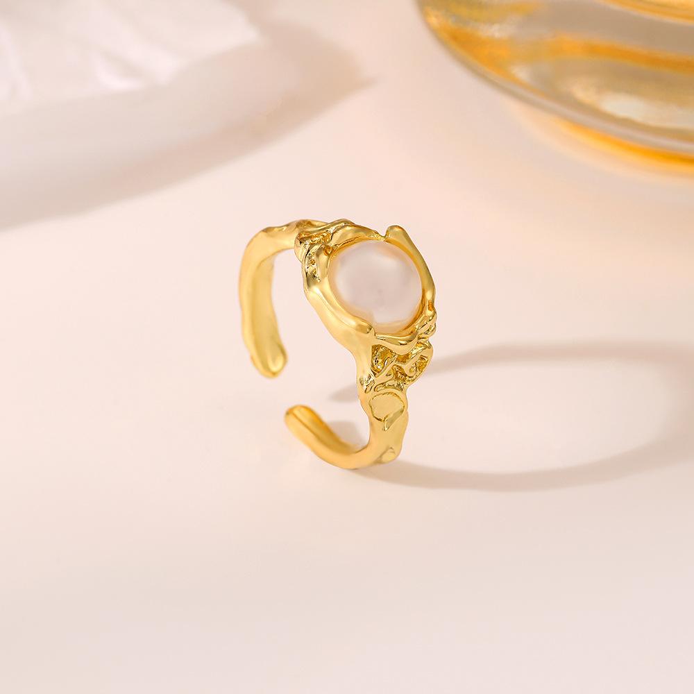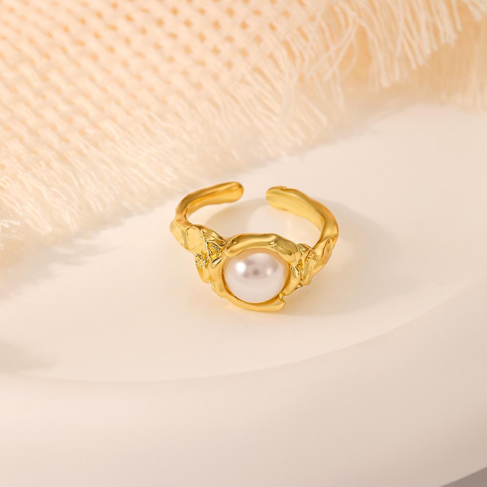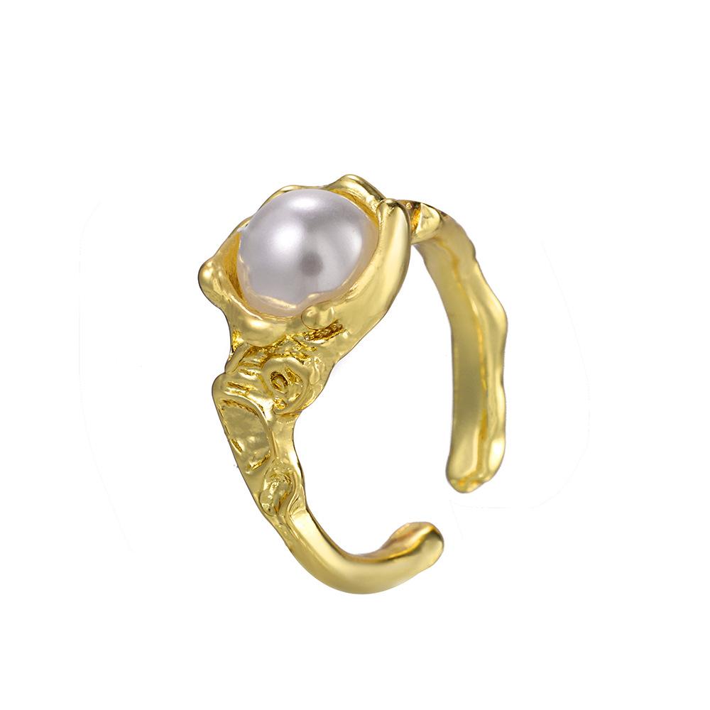 Moda Amazon versátil personalizado Dorado patrón cóncavo-convexo abierto anillo con incrustaciones de perlas joyería anillo femenino ventas directas de fábrica