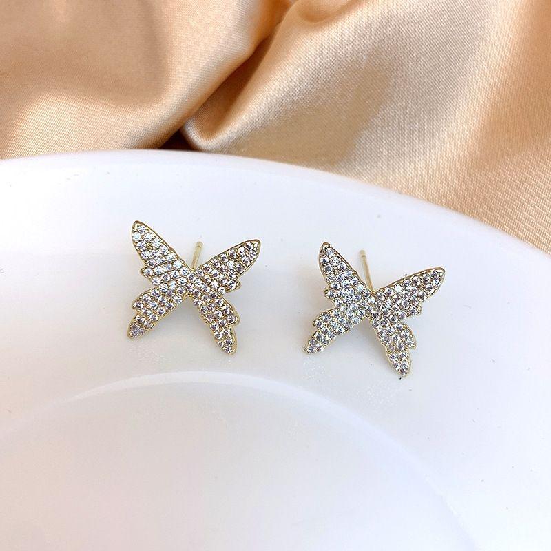 Compra Pendientes pequeños exquisitos de mariposa 2022, nuevos pendientes de clip de oreja de alta sensación de moda, pendientes de viento frío simples, pendientes de mujer al por mayor en Joom.pro