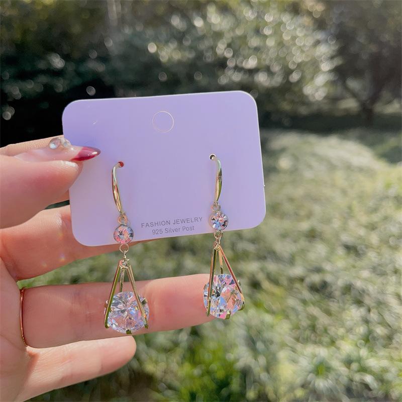 Nueva moda elegante Super Flash joyería con incrustaciones de pendientes simples en forma de gota hueca en línea pendientes del mismo estilo de celebridades al por mayor