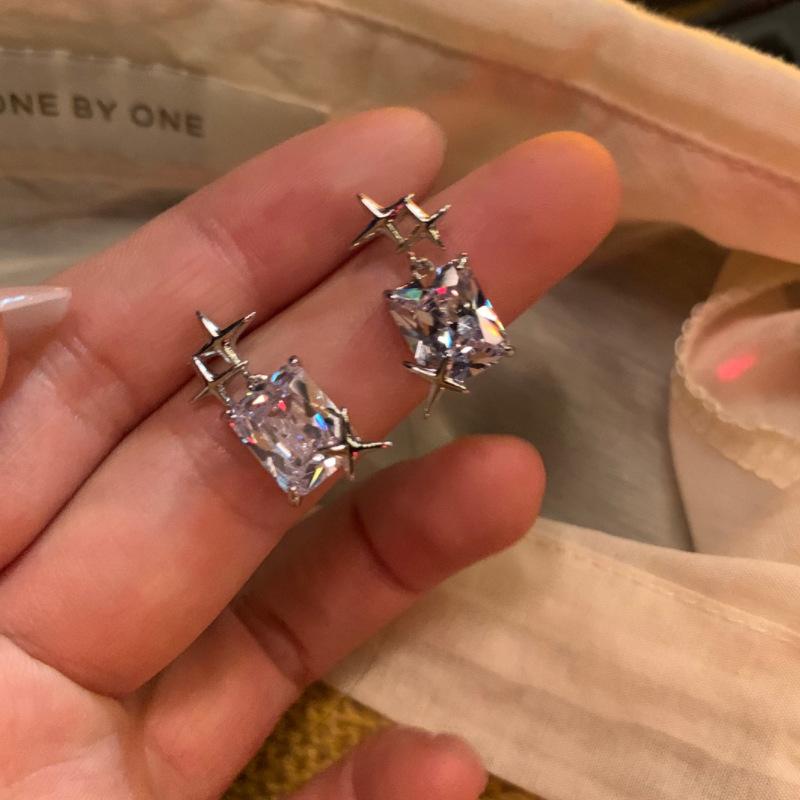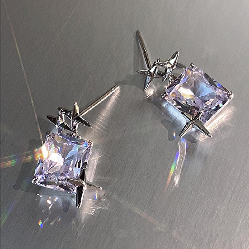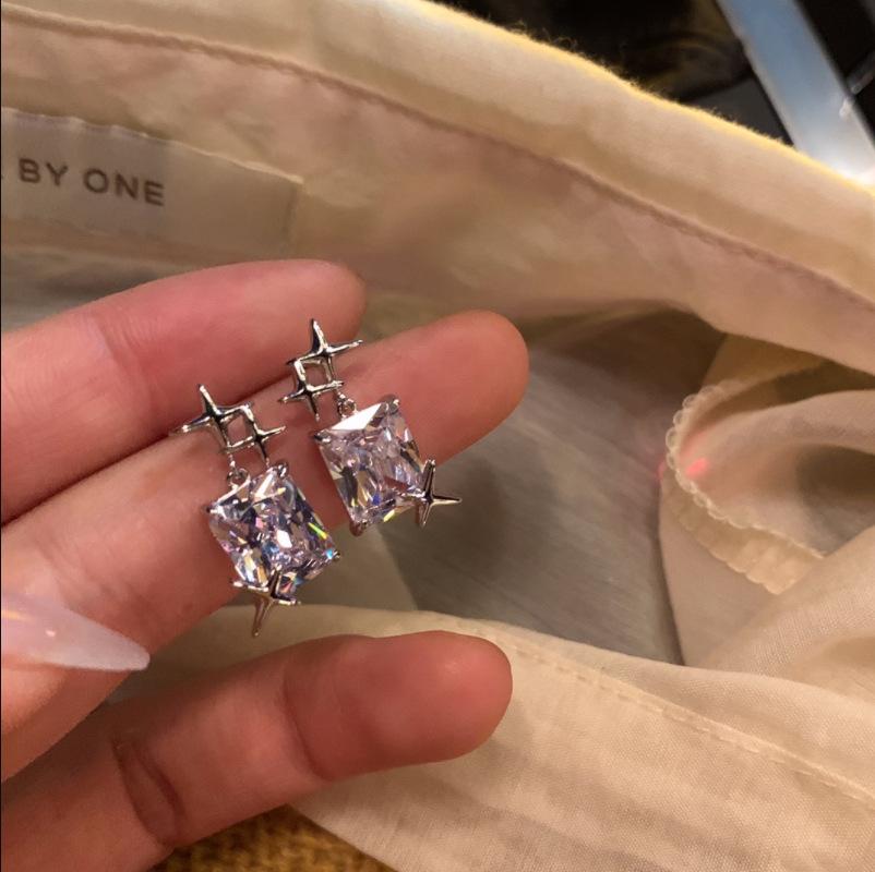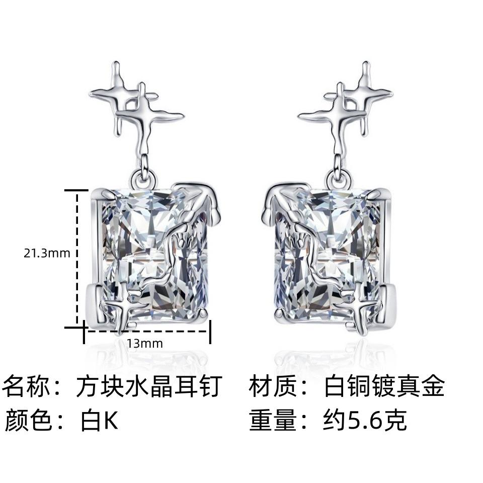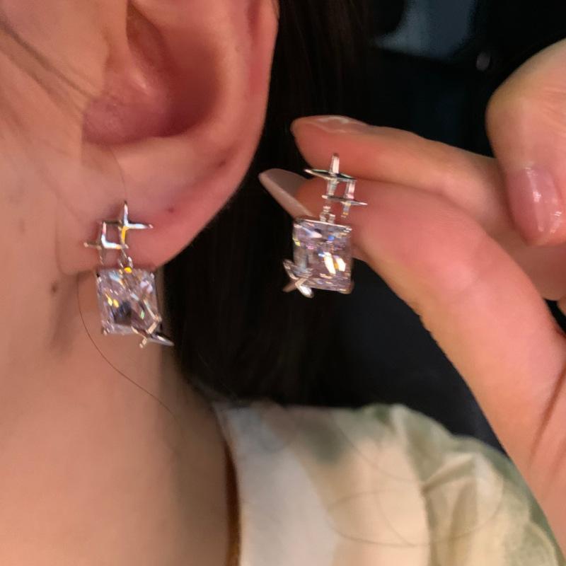 Compra Versión coreana de aretes de cristal cuadrado de estrellas populares para mujer, nicho, diseño de alta gama, viento frío, aretes rojos de Internet, aretes al por mayor en Joom.pro