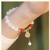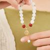 Pulsera de jade blanco de Hetian natural con accesorios de la marca Lucky envueltos en oro de 14 quilates, joyería de mano para mujer, pulsera de estilo suave