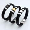 Pulsera de cuero tejido de acero de titanio de moda de suministro de comercio exterior transfronterizo Pulsera personalizada tejida de cuero de acero inoxidable para hombres
