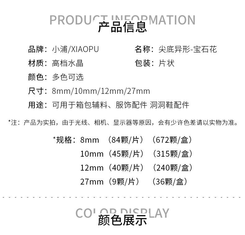 Selección Transfronteriza de Flor de Piedra Preciosa de Alta Gama Vidrio Diamante Fondo Puntiagudo Diamante de Forma Especial Accesorios de Ropa Equipaje Accesorios para Funda de Teléfono Móvil Pedrería