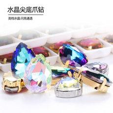 Fabricantes venta al por mayor gota de agua garra diamante vidrio con forma especial oro cosido a mano accesorios de joyería de diamantes materiales accesorios de ropa DIY