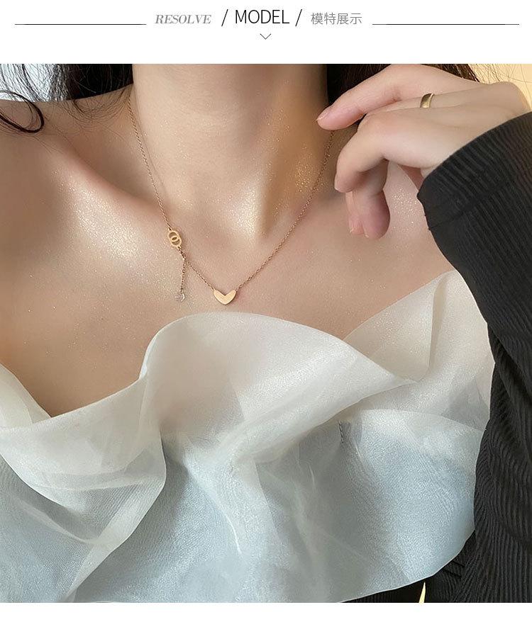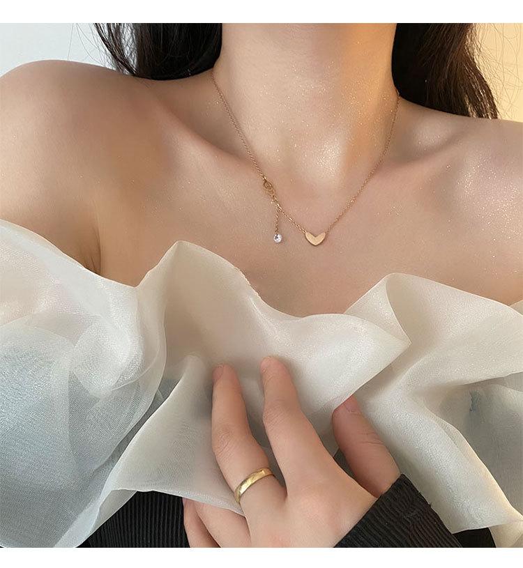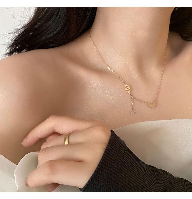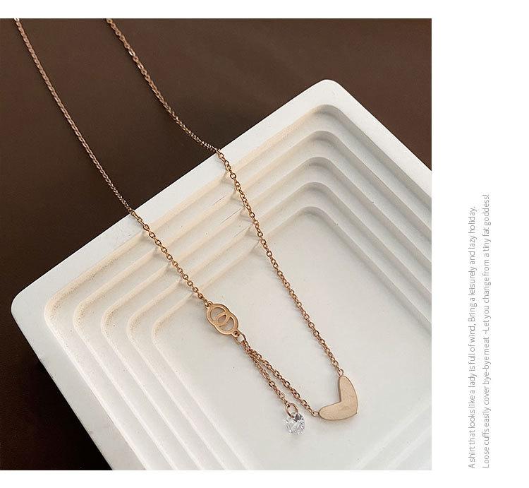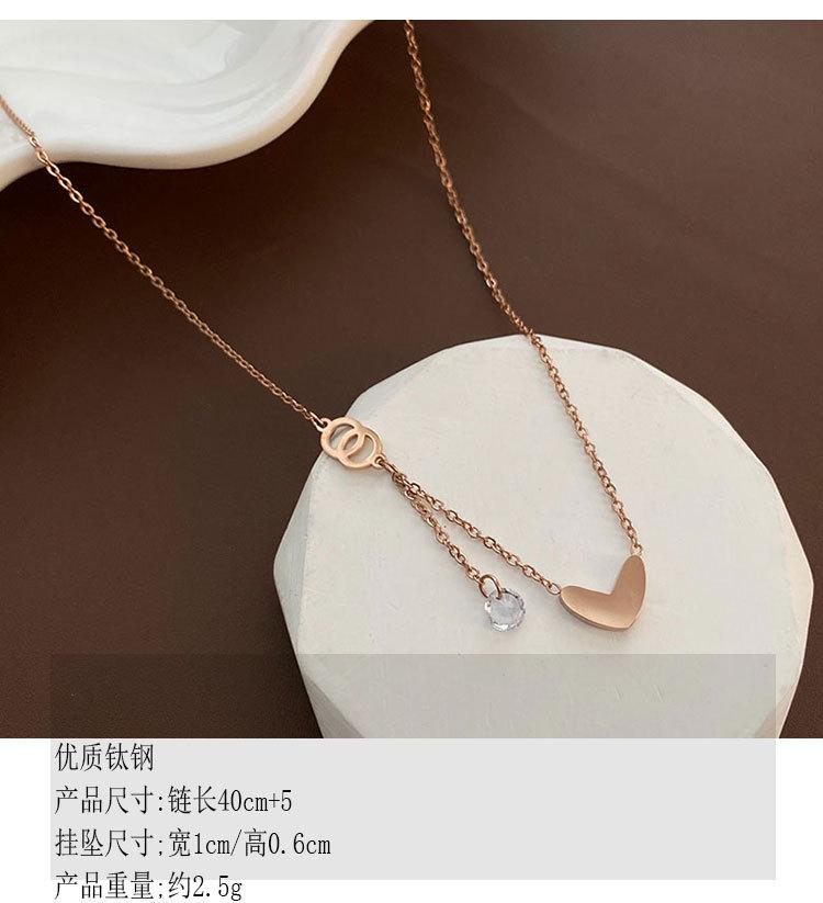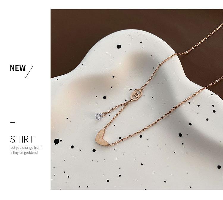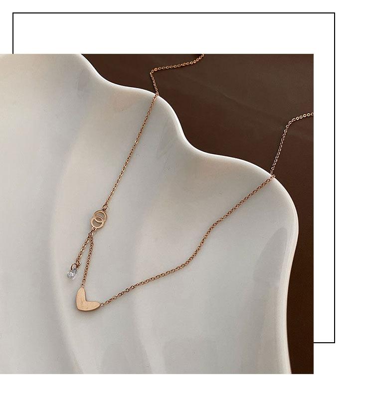 Colgante de oro rosa con circonitas y cadena de clavícula exquisita para mujer, diseño de acero de titanio con nicho que combina con todo. No se decolora fácilmente.
