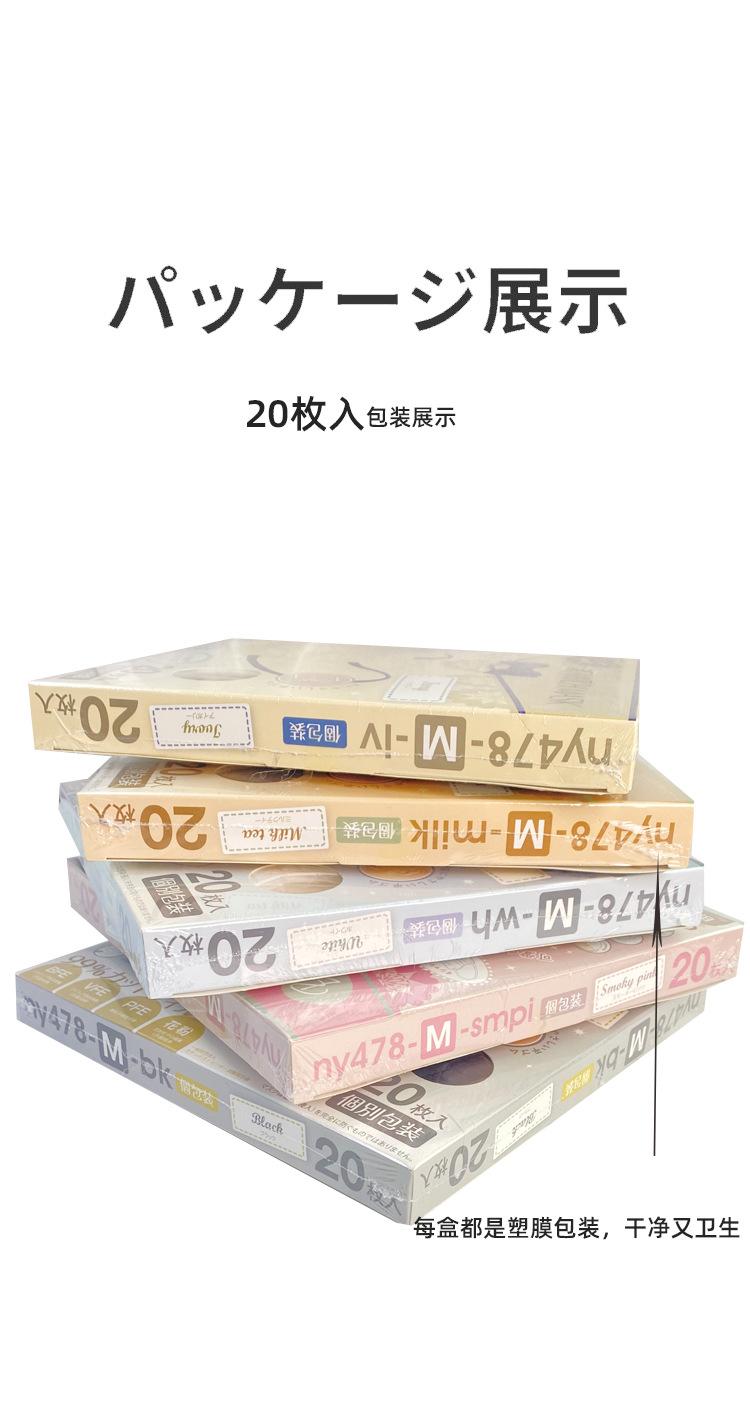 White (20/box), Milk tea color (20/box), Smoke pink (20/box), creamy-white (20/box), Black (20/box)