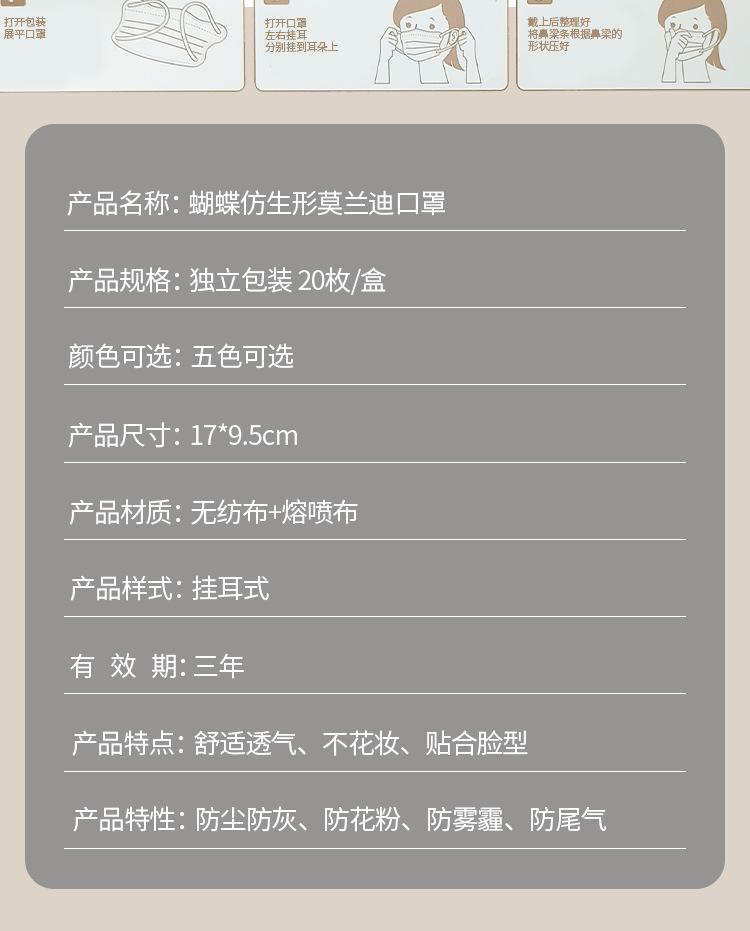 Mascarilla facial pequeña Morandi alto valor facial protección de tres capas desechable 3d mascarilla tridimensional caja de embalaje independiente transpirable