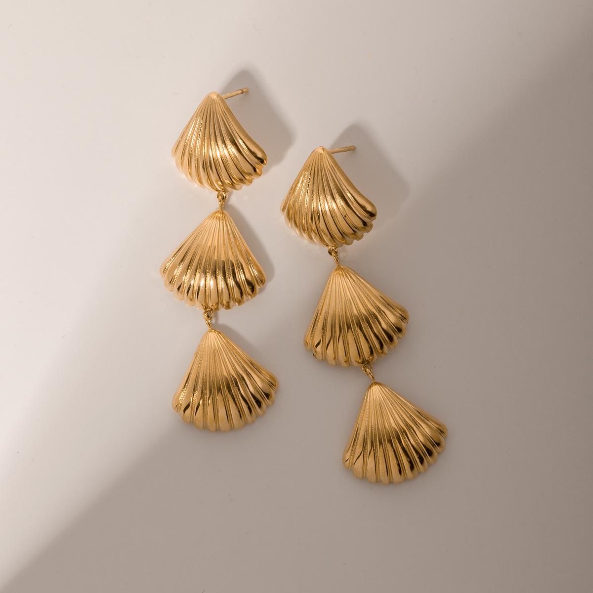 Compra Pendientes colgantes de alta calidad con 3 conchas de acero inoxidable en oro de 18 quilates para mujer, de moda europea y americana, sencillos y combinables al por mayor en Joom.pro