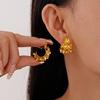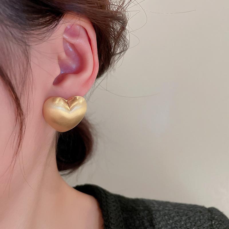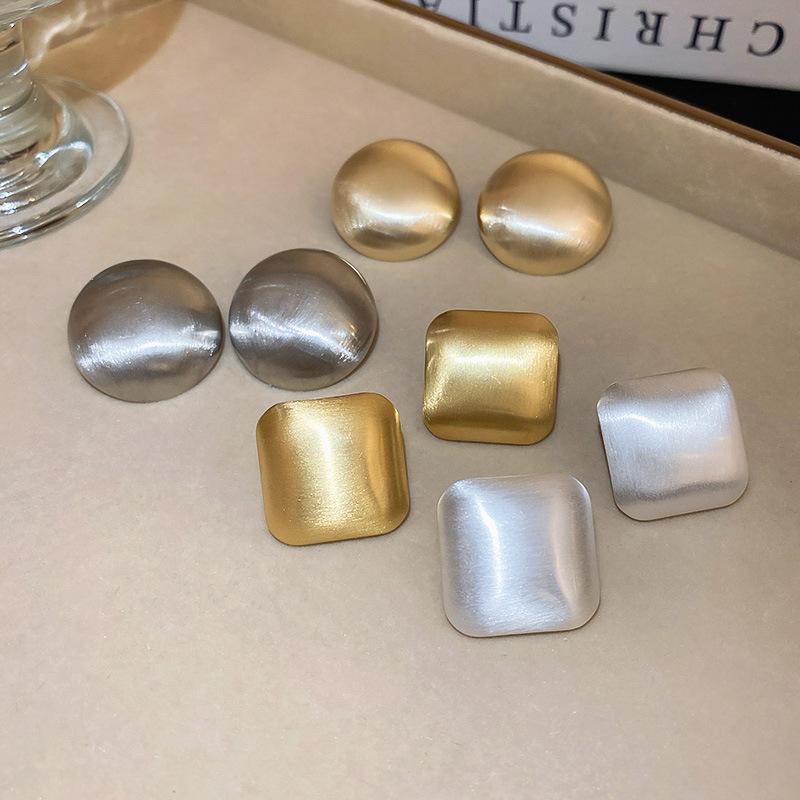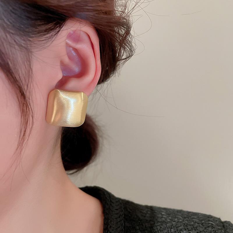 Aretes de pin cuadrados metálicos de alta calidad con forma de C de amor plateados, aretes geométricos de temperamento simple para viajeras europeas y americanas para mujer