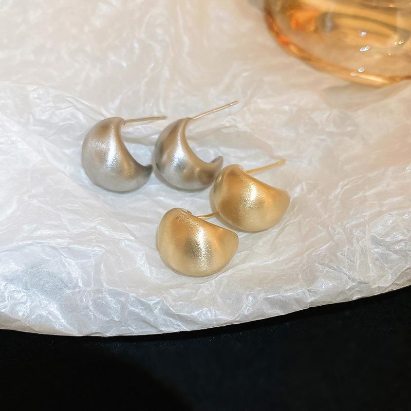 Silver Needle-Gold C- Shaped Beanie Earrings, Silver Needle-silver C- shaped Beanie Earrings