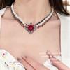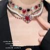 Collar multicapa con gema de perla y diamante rojo de paloma austriaca, chapado en oro de 18 quilates, diseño de gargantilla de circonita antigua.