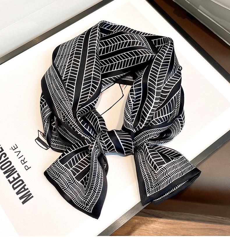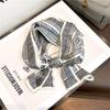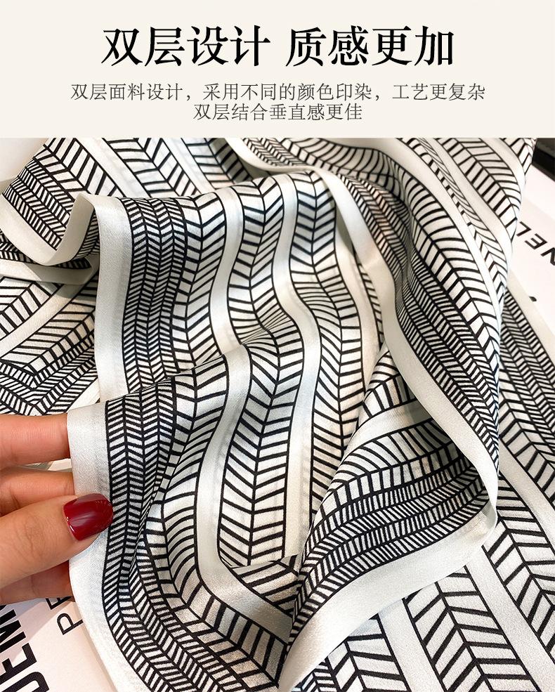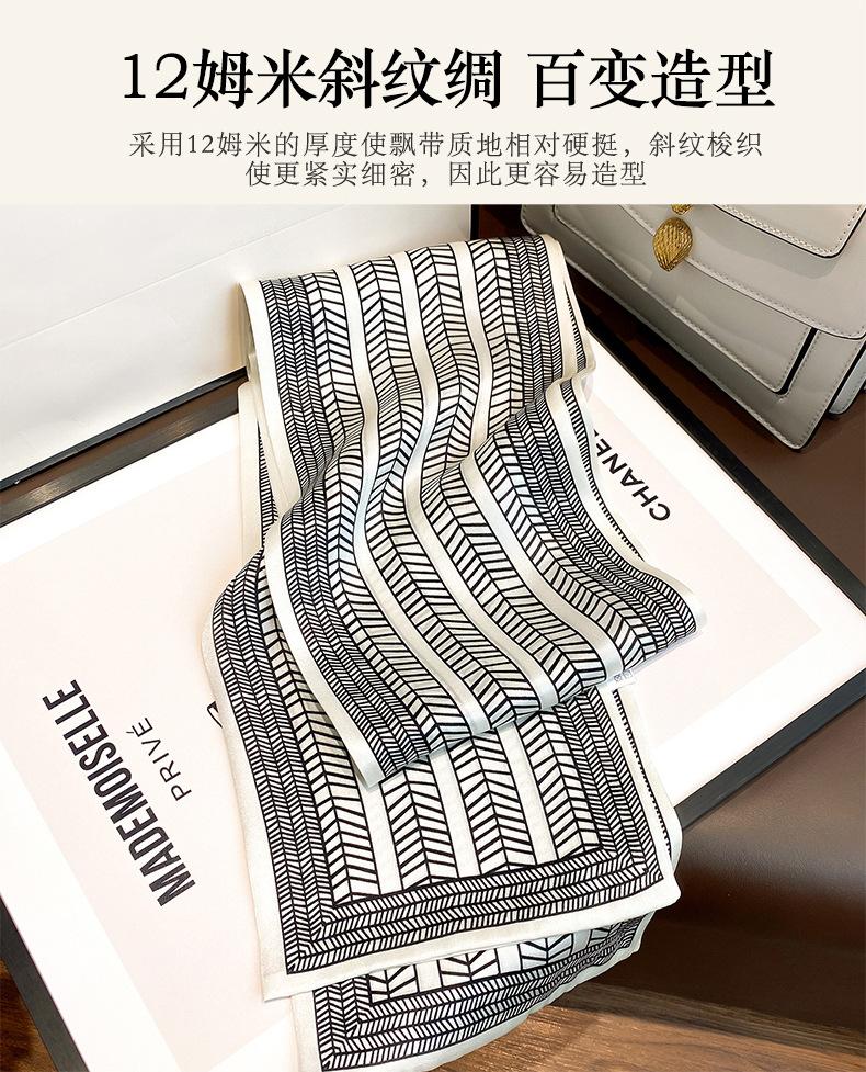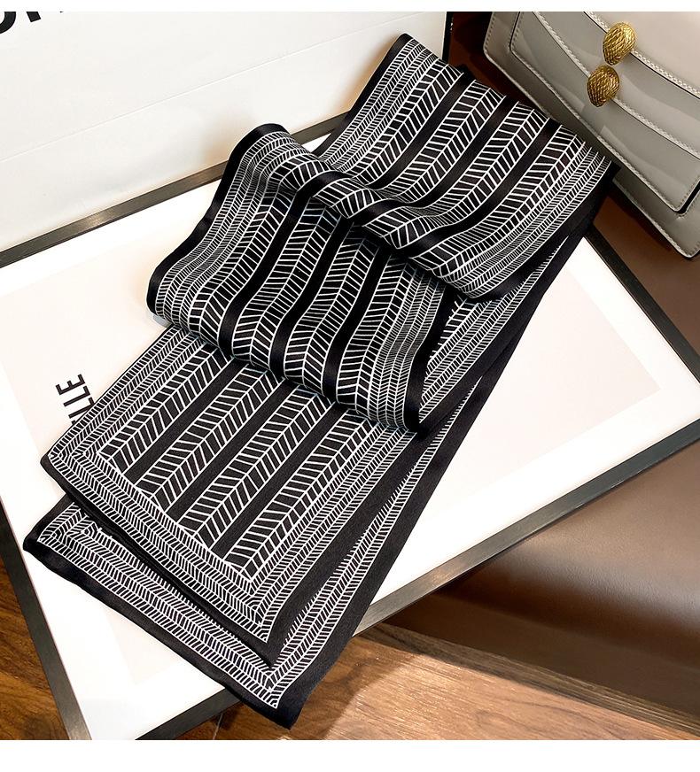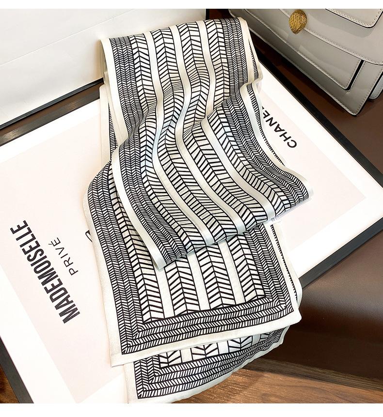 Nueva y elegante bufanda de seda morera con diseño geométrico, bufanda de seda larga de doble capa para mujer, bufanda decorativa con cinta vintage.