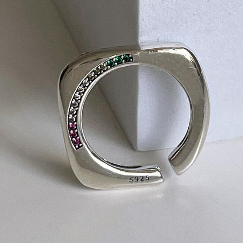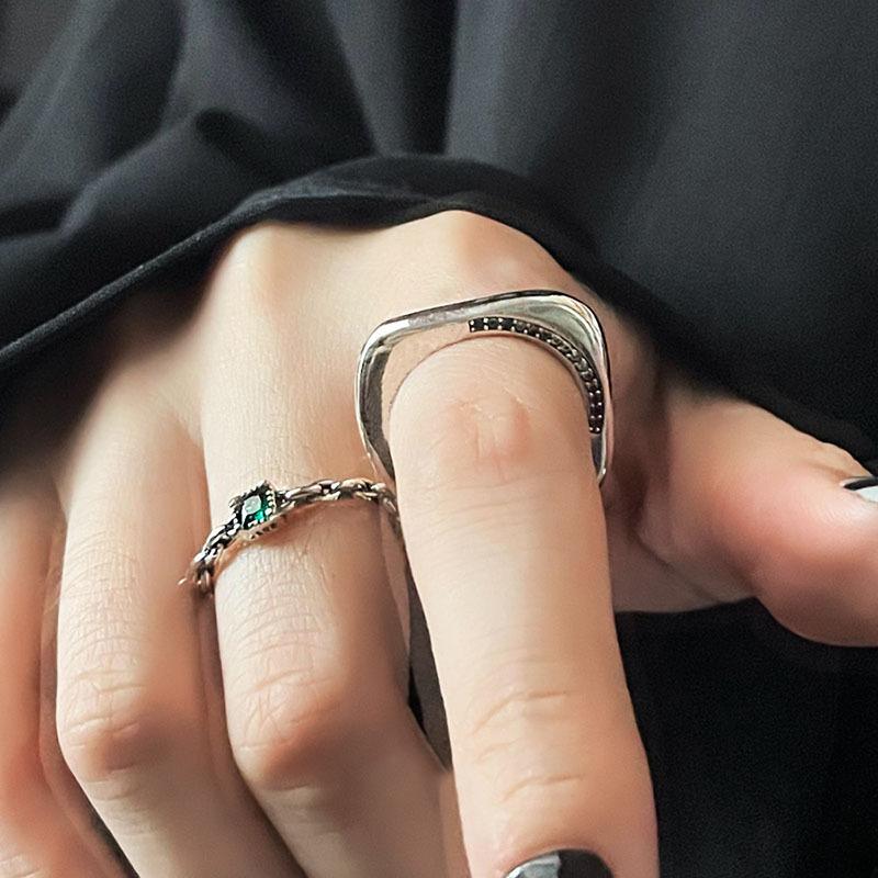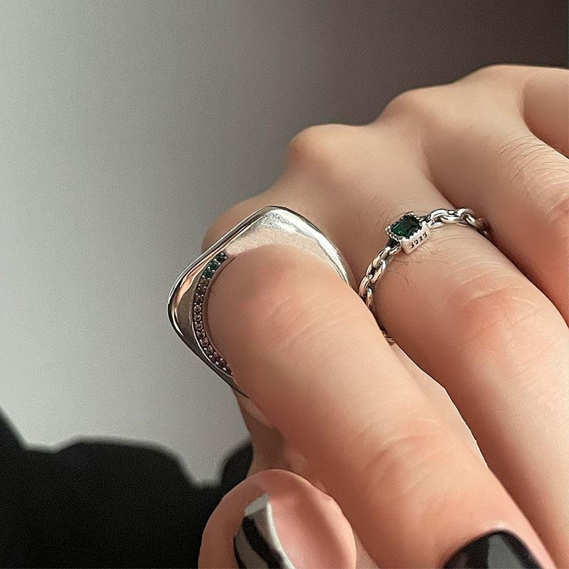 Anillo de Fila de Diamantes de Color Retro Envejecido para Mujer Estilo ins Personalidad Diseño Nicho Sentido Avanzado Anillo 2022 Nuevo