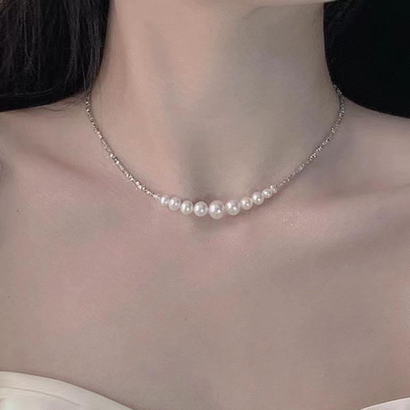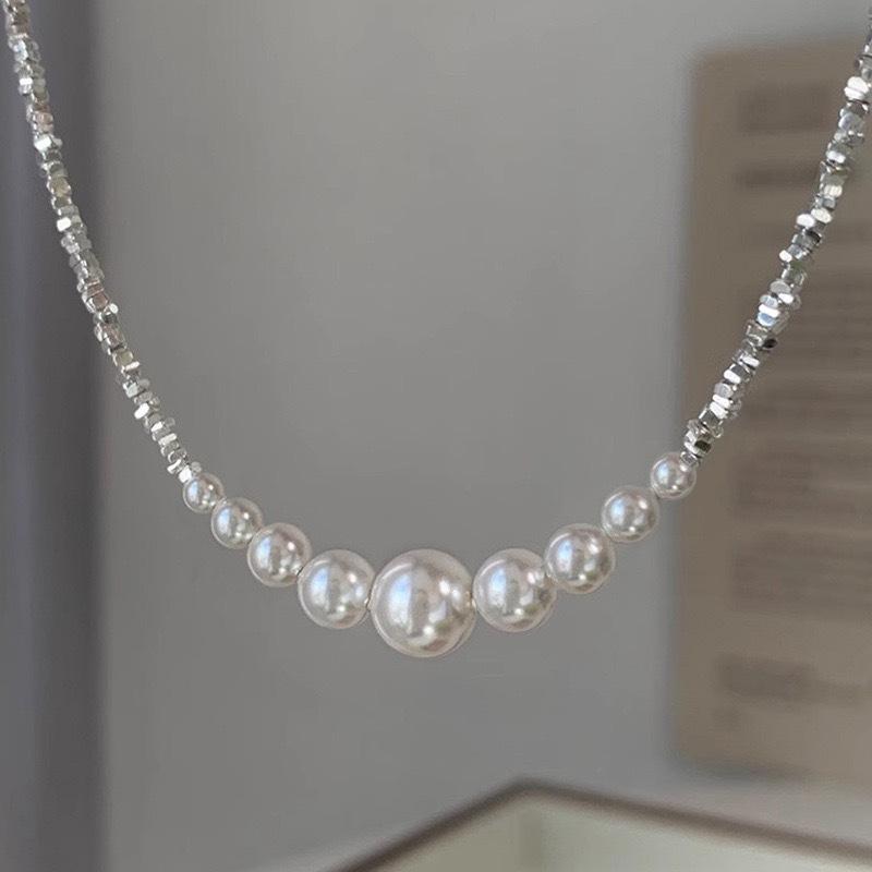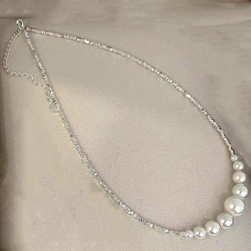 Collar de perlas de plata de ley S925 con forma de sonrisa Shijia, con cuentas rotas, pulsera de tamaño degradado, temperamento femenino, ligero, de lujo, estilo popular ins