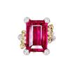 Anillo de apertura con camelia, diamante y rosa de danza floral, imitación de rubí, color natural, turmalina roja, rubí.