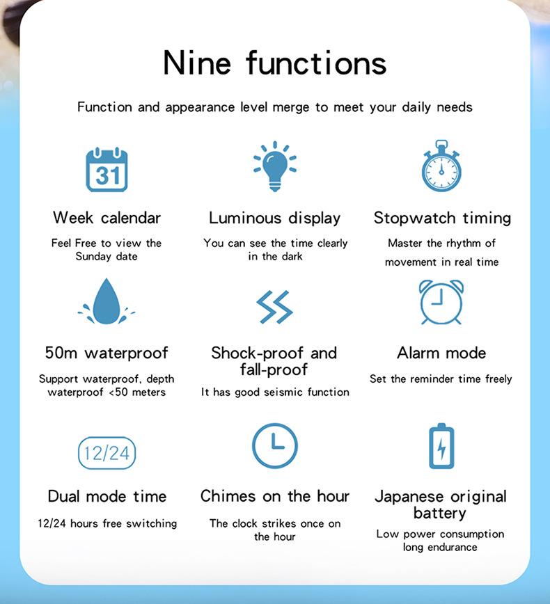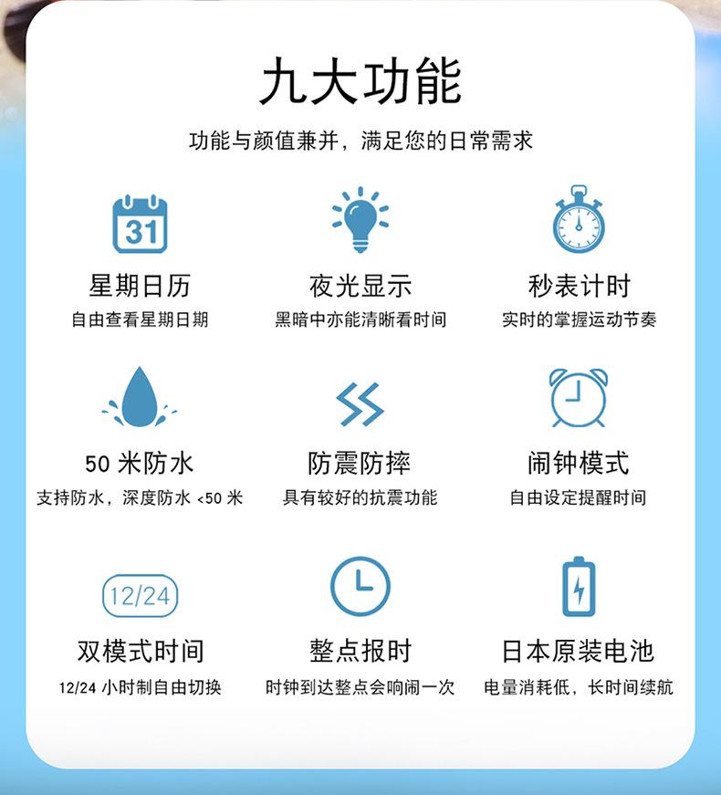 2. ¡Cada modelo es resistente al agua para nadar de 30 a 50 metros! ¡Pero no es apto para baños en agua caliente!