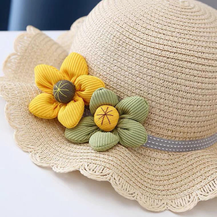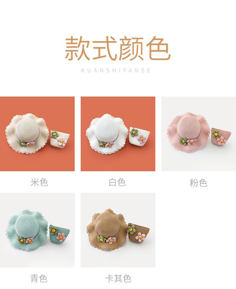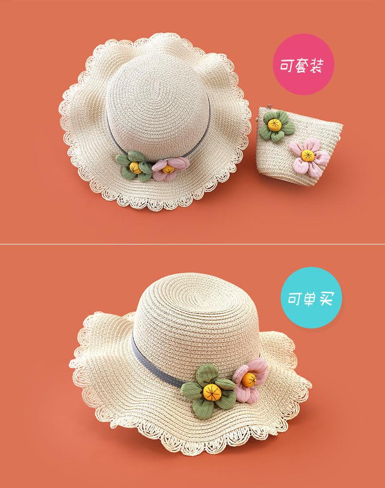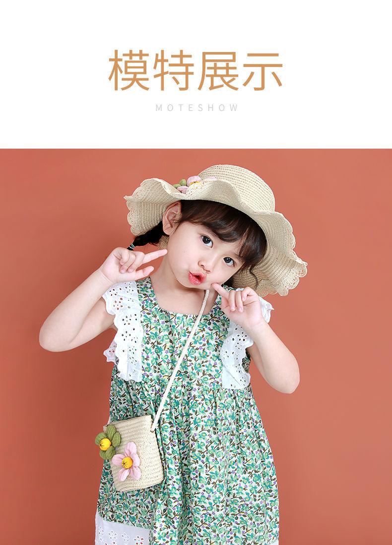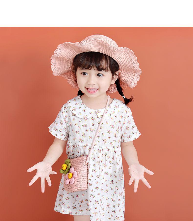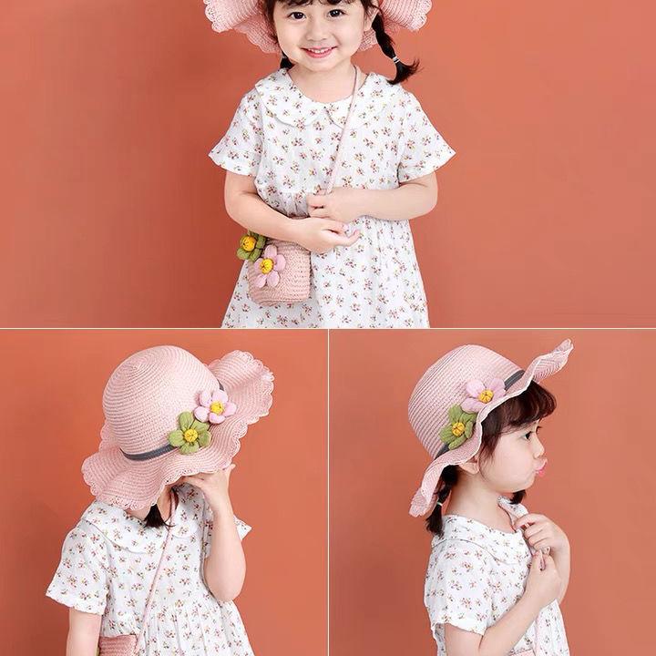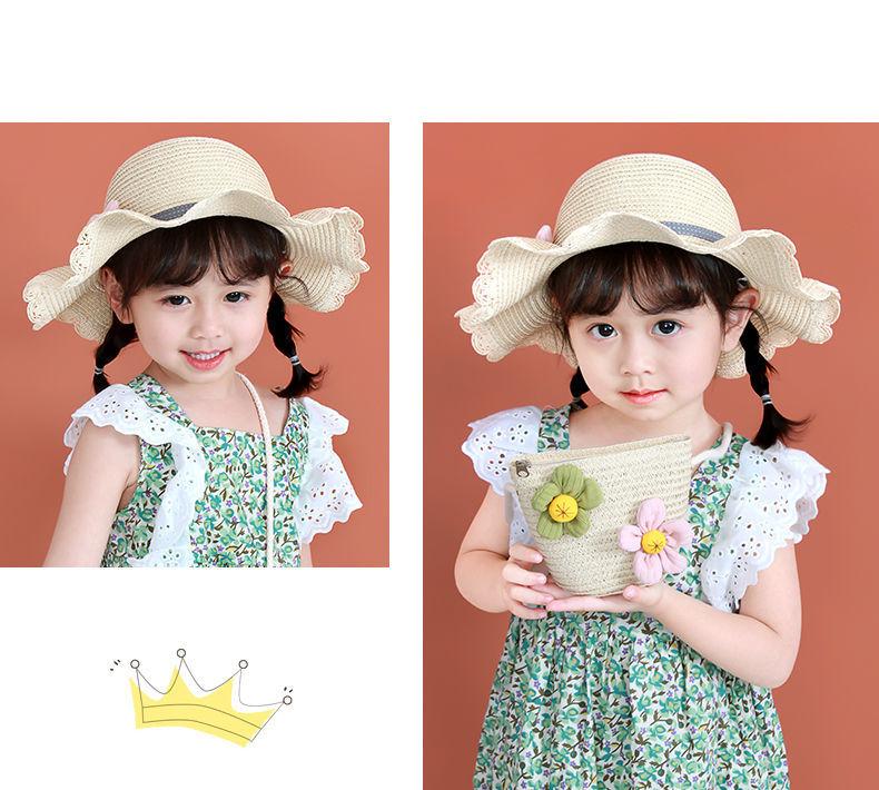 Sombrero de sol para niñas, primavera y verano, nuevo sombrero de paja, monedero, bolso, protección solar para bebés, sombrero de pescador de ala grande