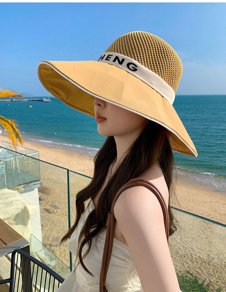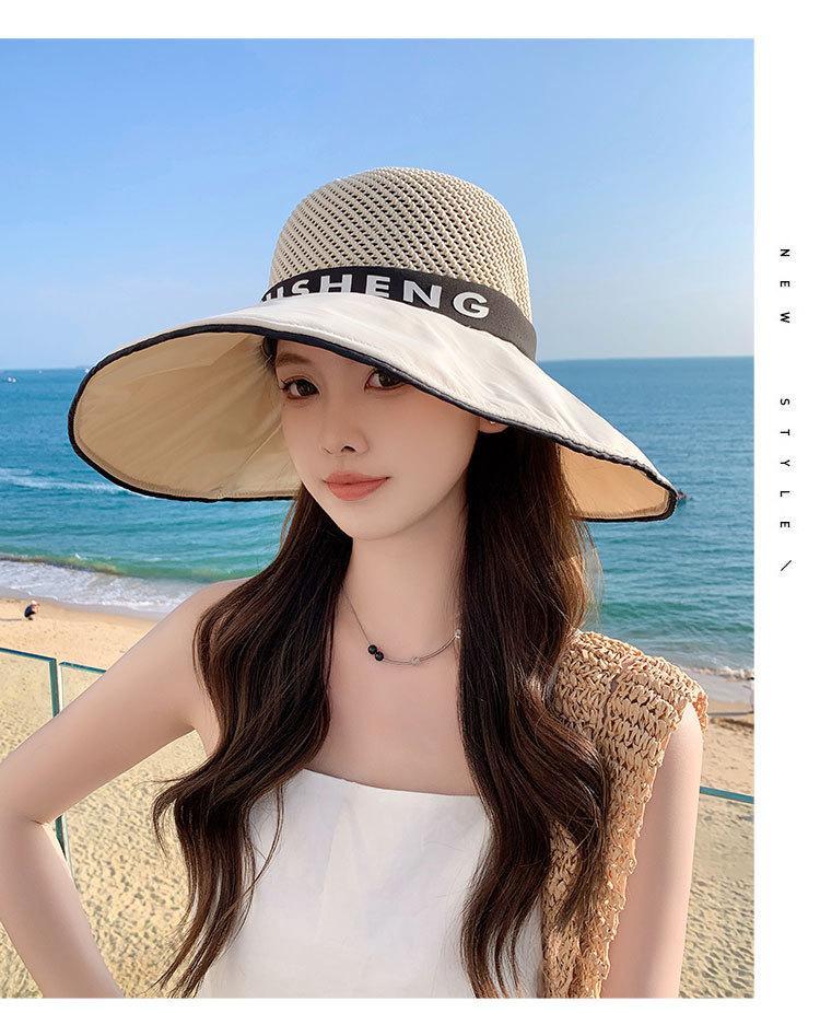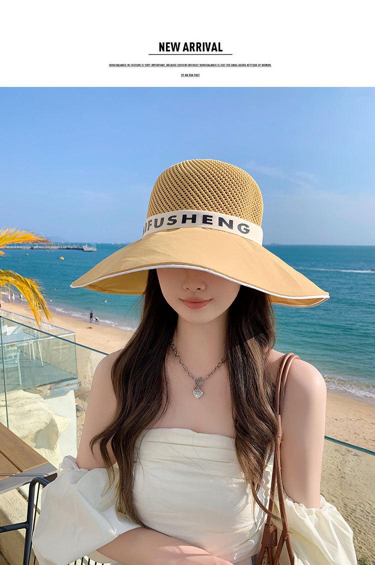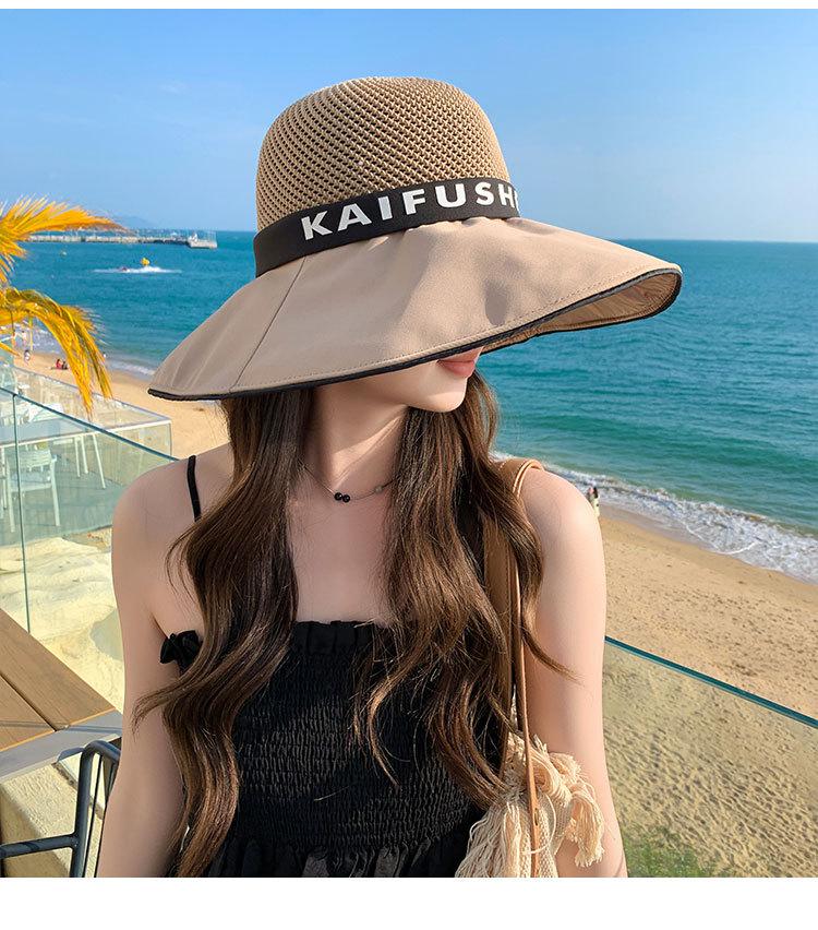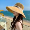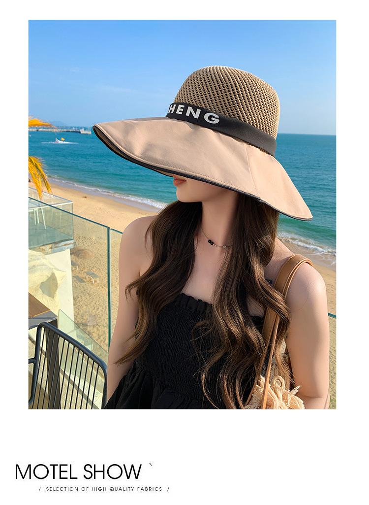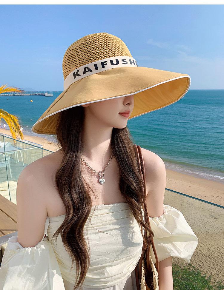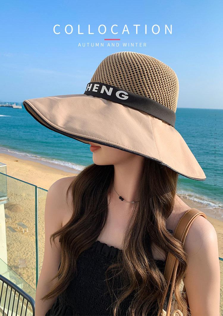 Sombrero de ala ancha de verano para mujer, estilo coreano, transpirable, fresco, de playa, resistente a los rayos UV, de goma negra, combina con todo.