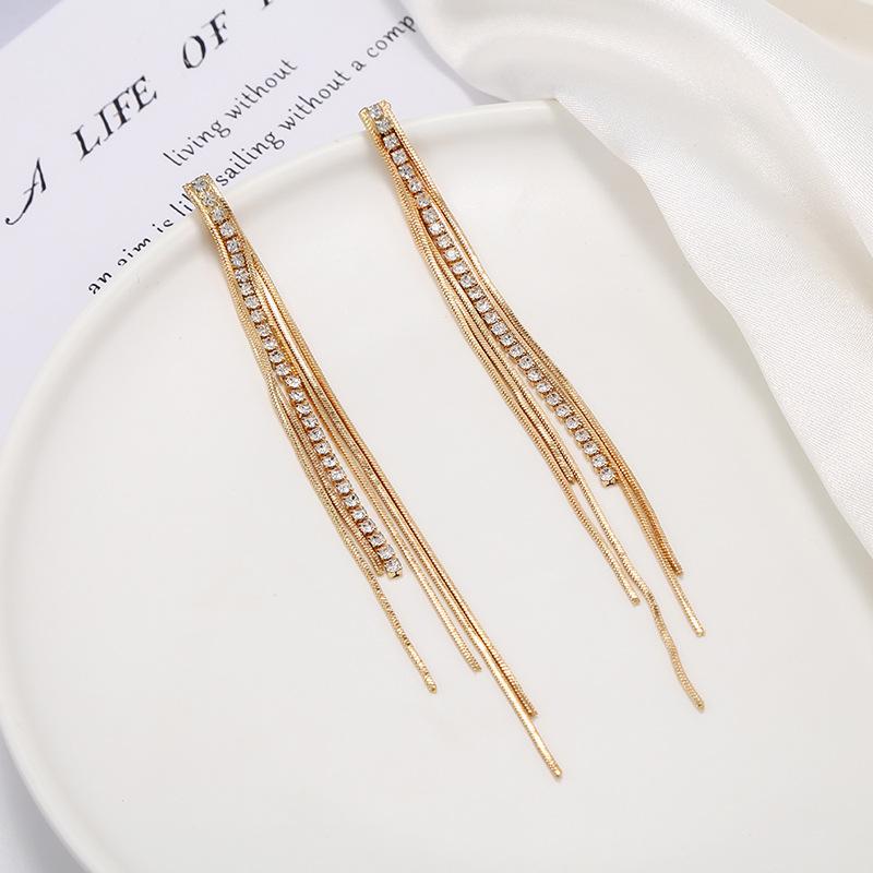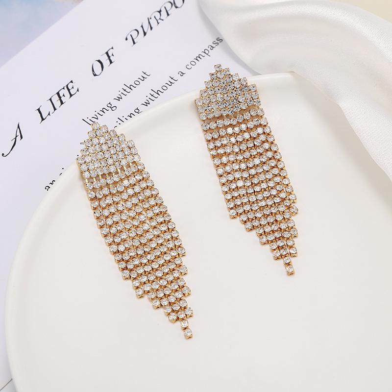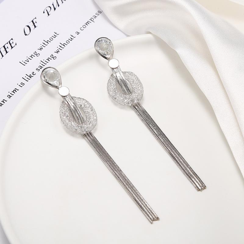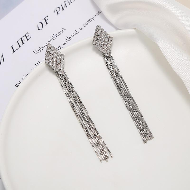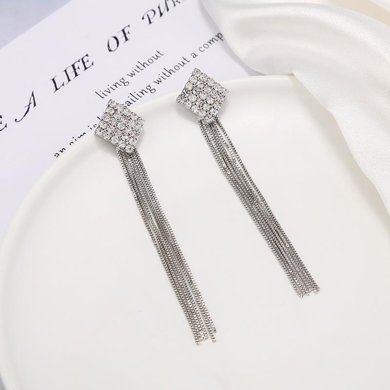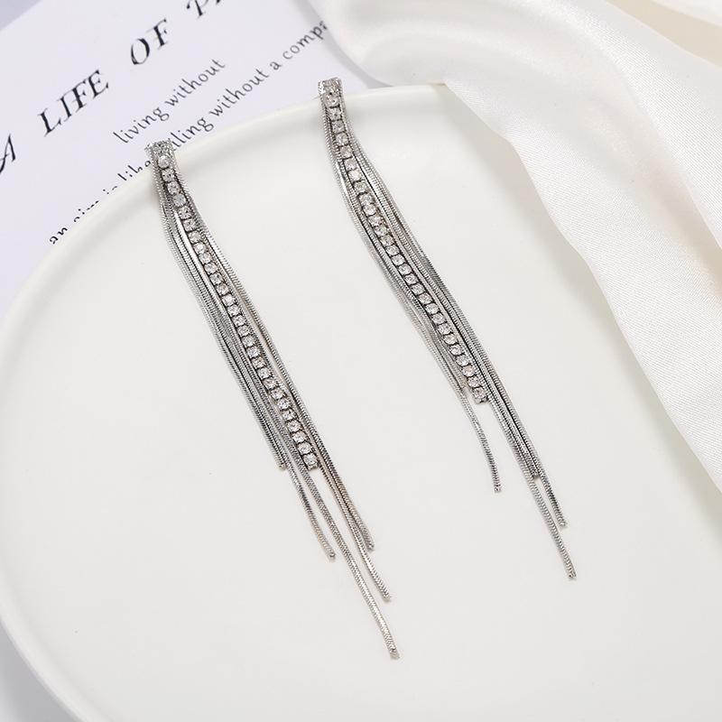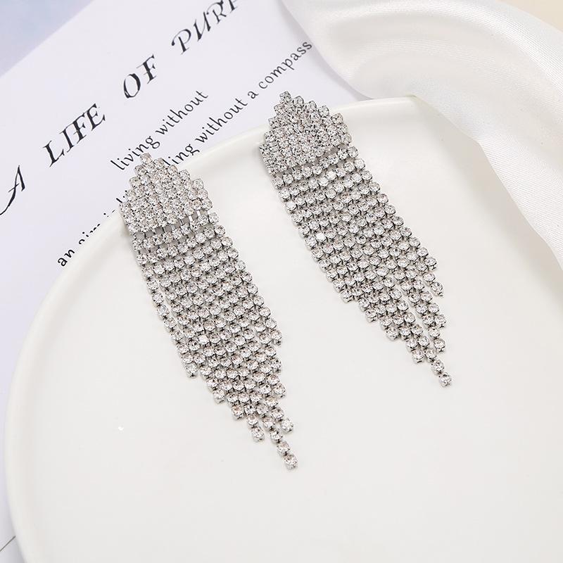 Pendientes de borlas exageradas de estilo europeo y americano con aguja de plata s925 para mujer, pendientes largos de diamantes a juego de estilo coreano para mujer.