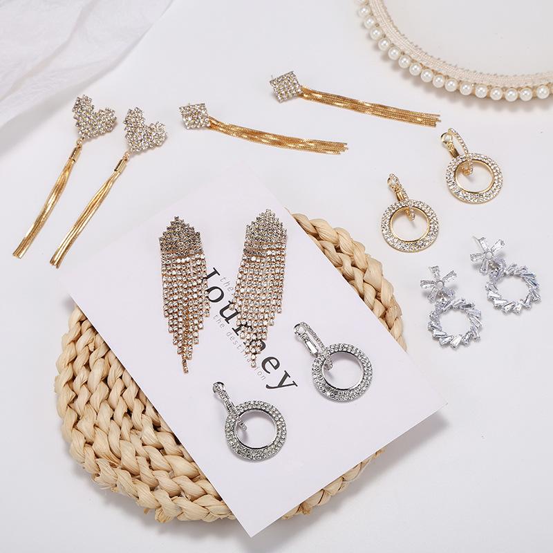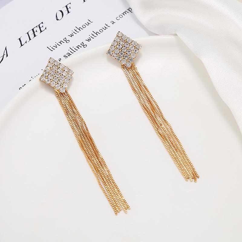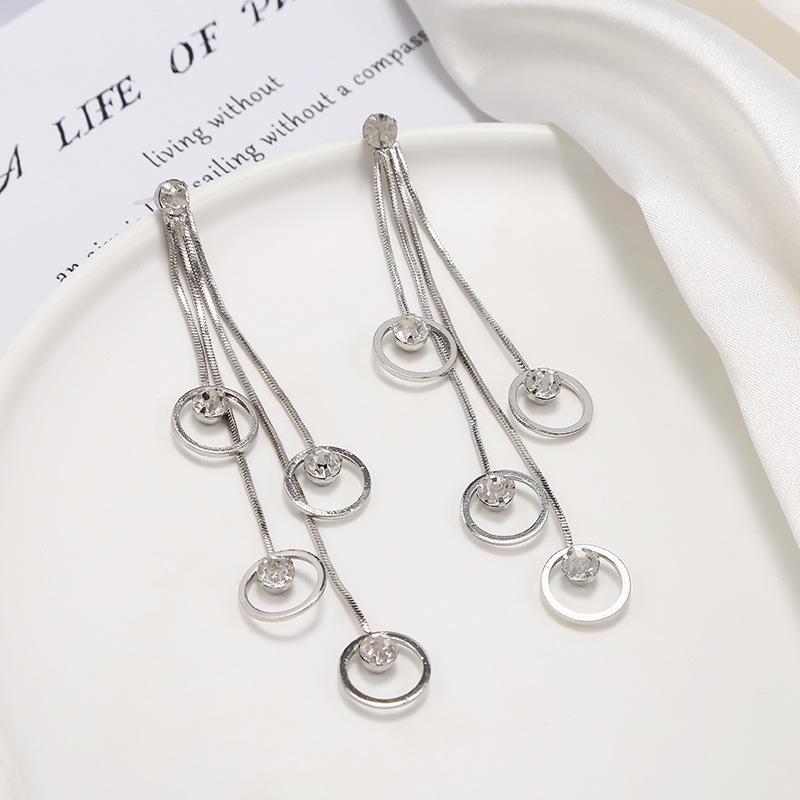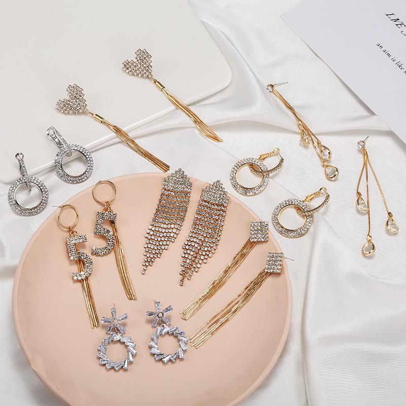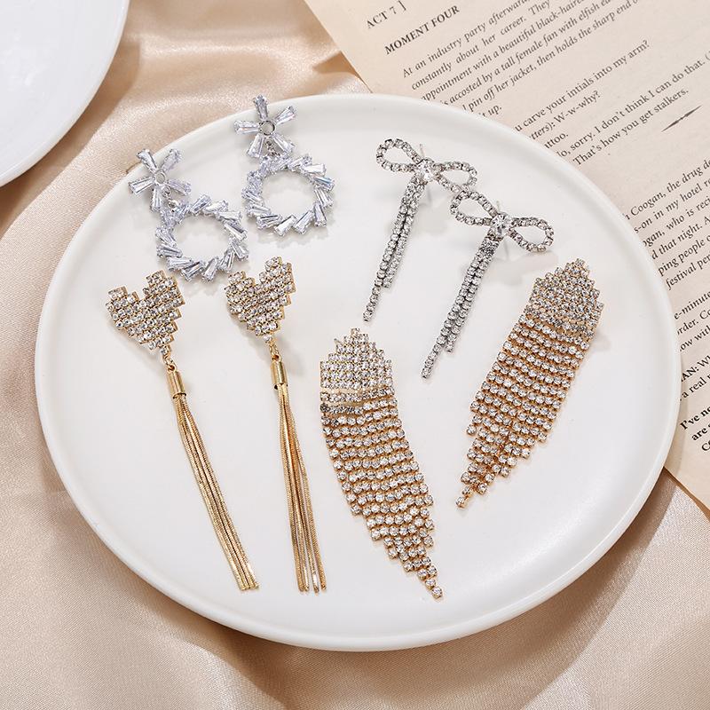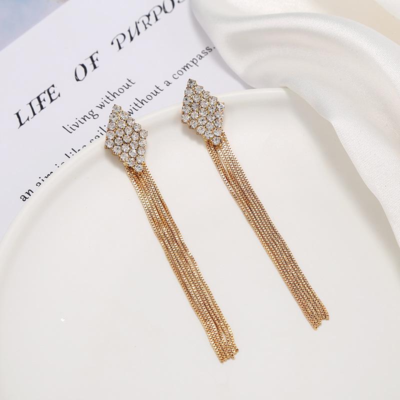 Pendientes de borlas exageradas de estilo europeo y americano con aguja de plata s925 para mujer, pendientes largos de diamantes a juego de estilo coreano para mujer.
