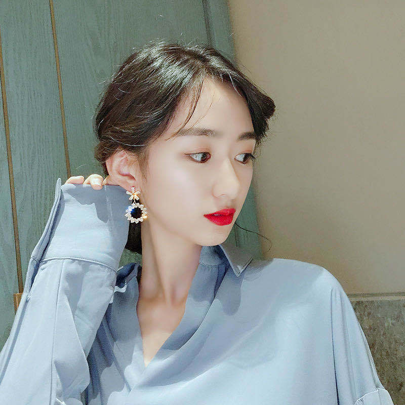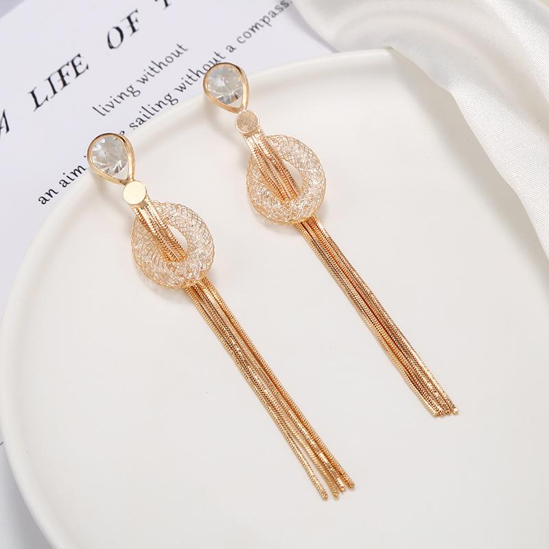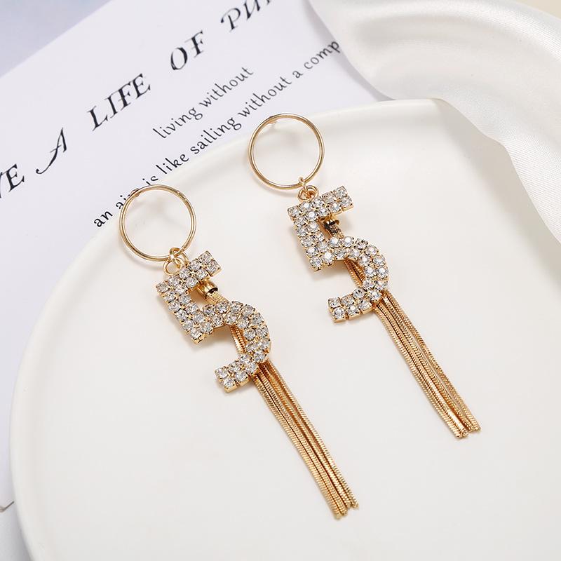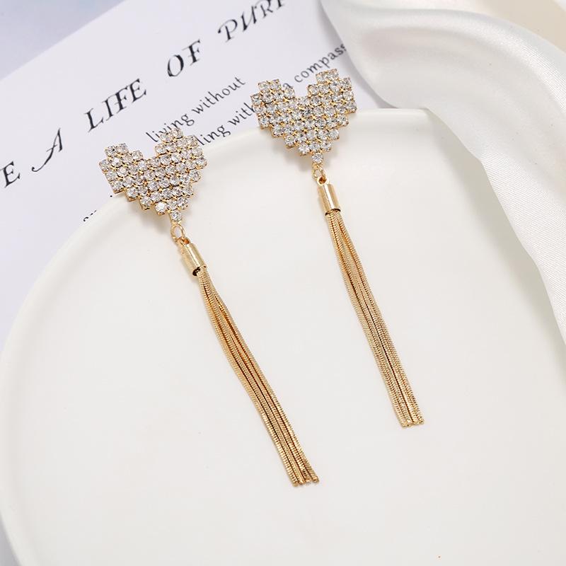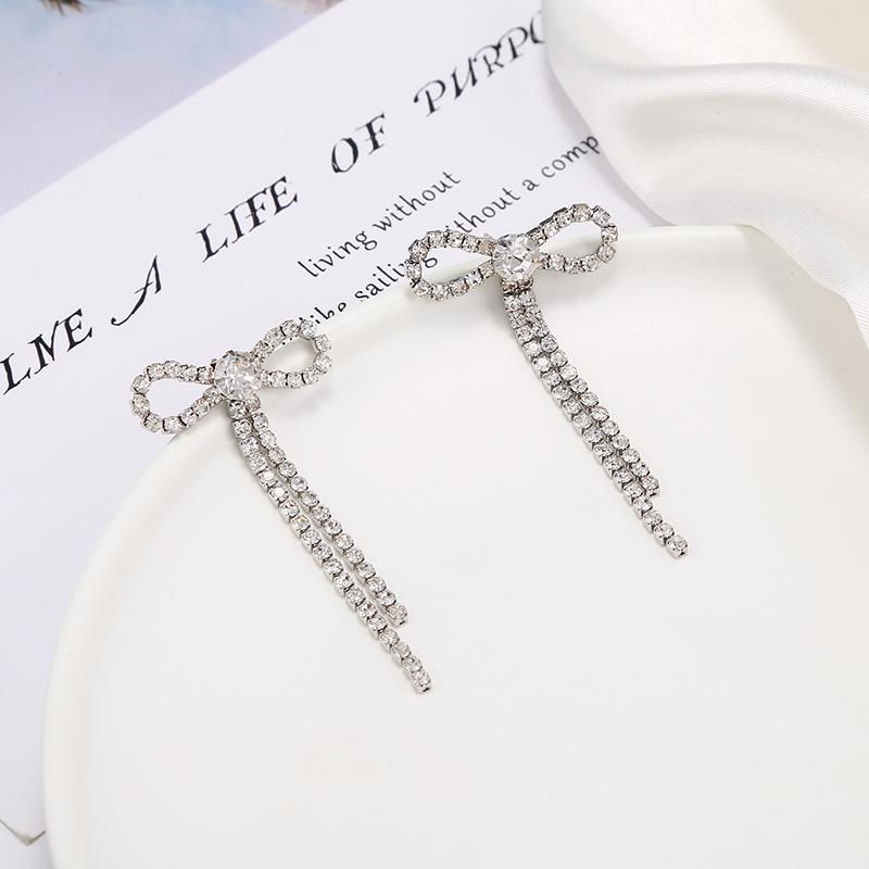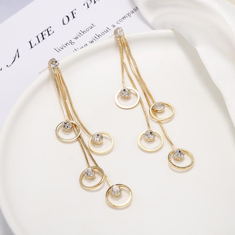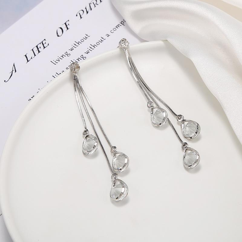 Pendientes de borlas exageradas de estilo europeo y americano con aguja de plata s925 para mujer, pendientes largos de diamantes a juego de estilo coreano para mujer.