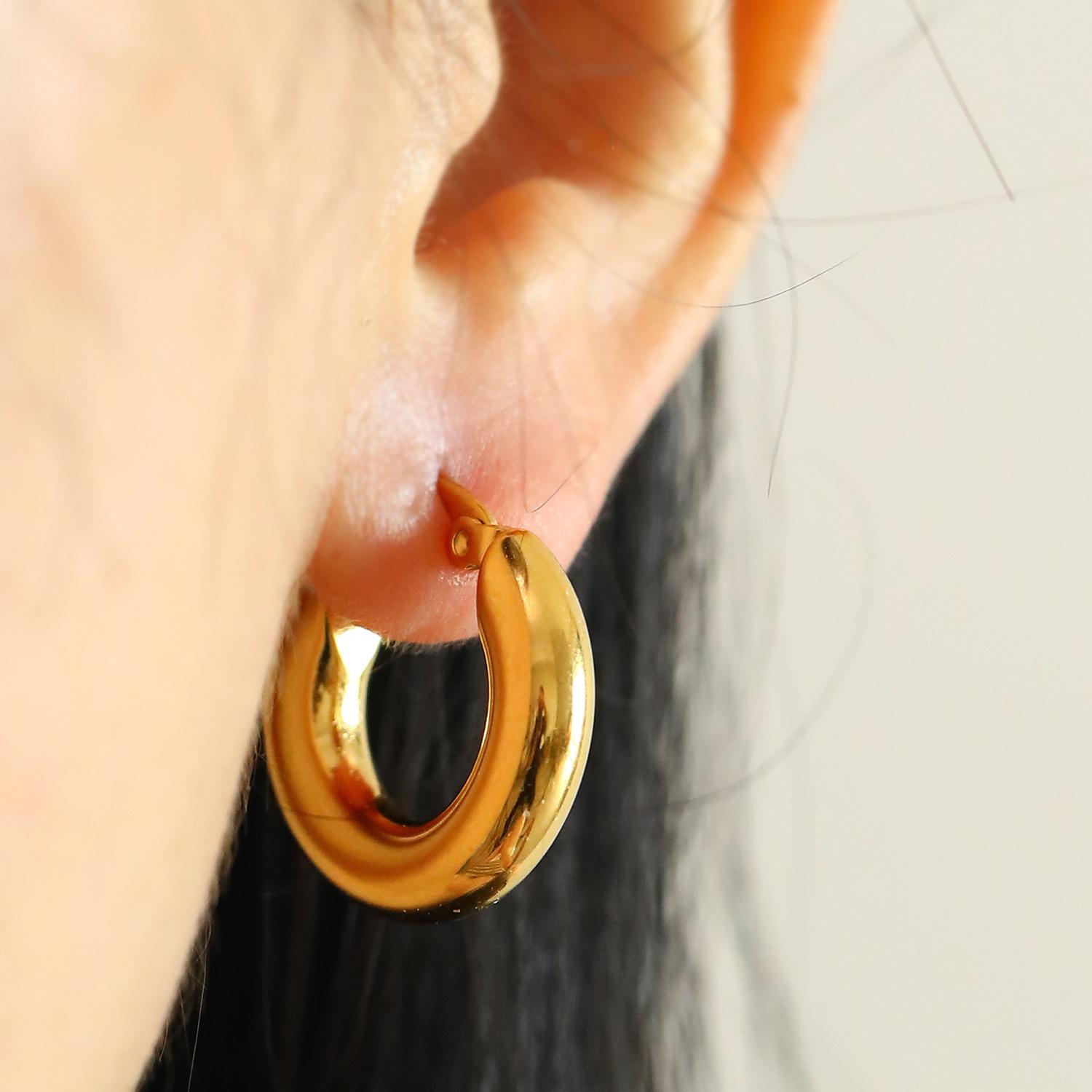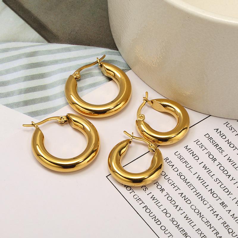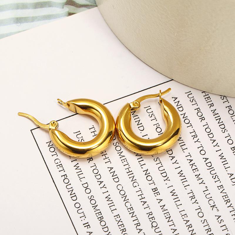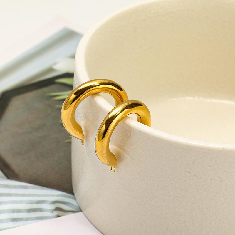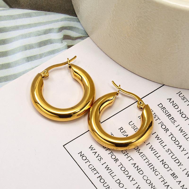 Pendientes de círculo geométrico personalizados, estilo sencillo y frío, de estilo japonés y coreano, de moda, chapados en acero de titanio y oro de 18 quilates.