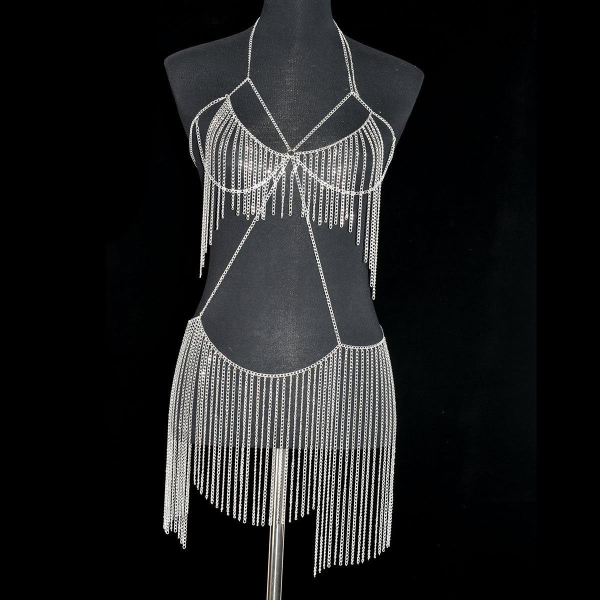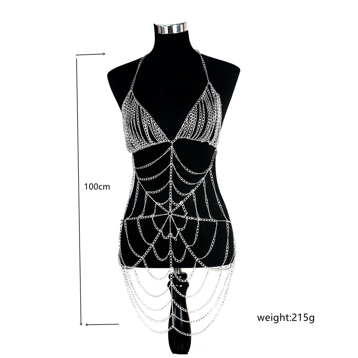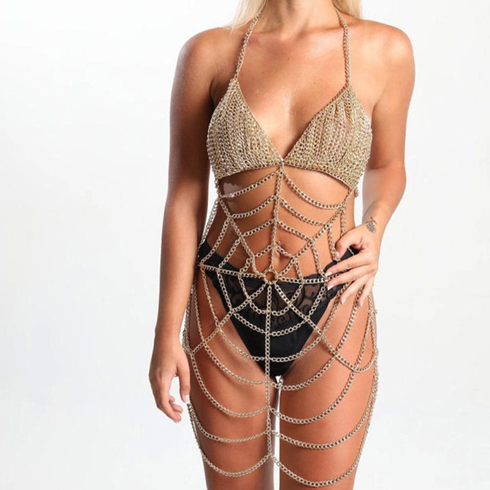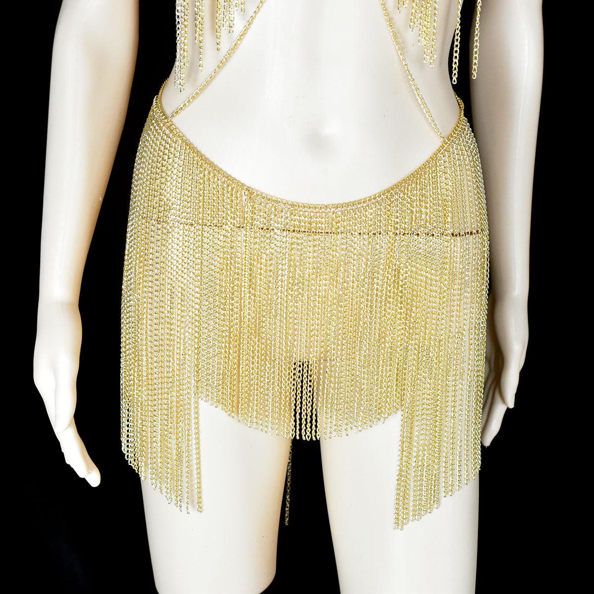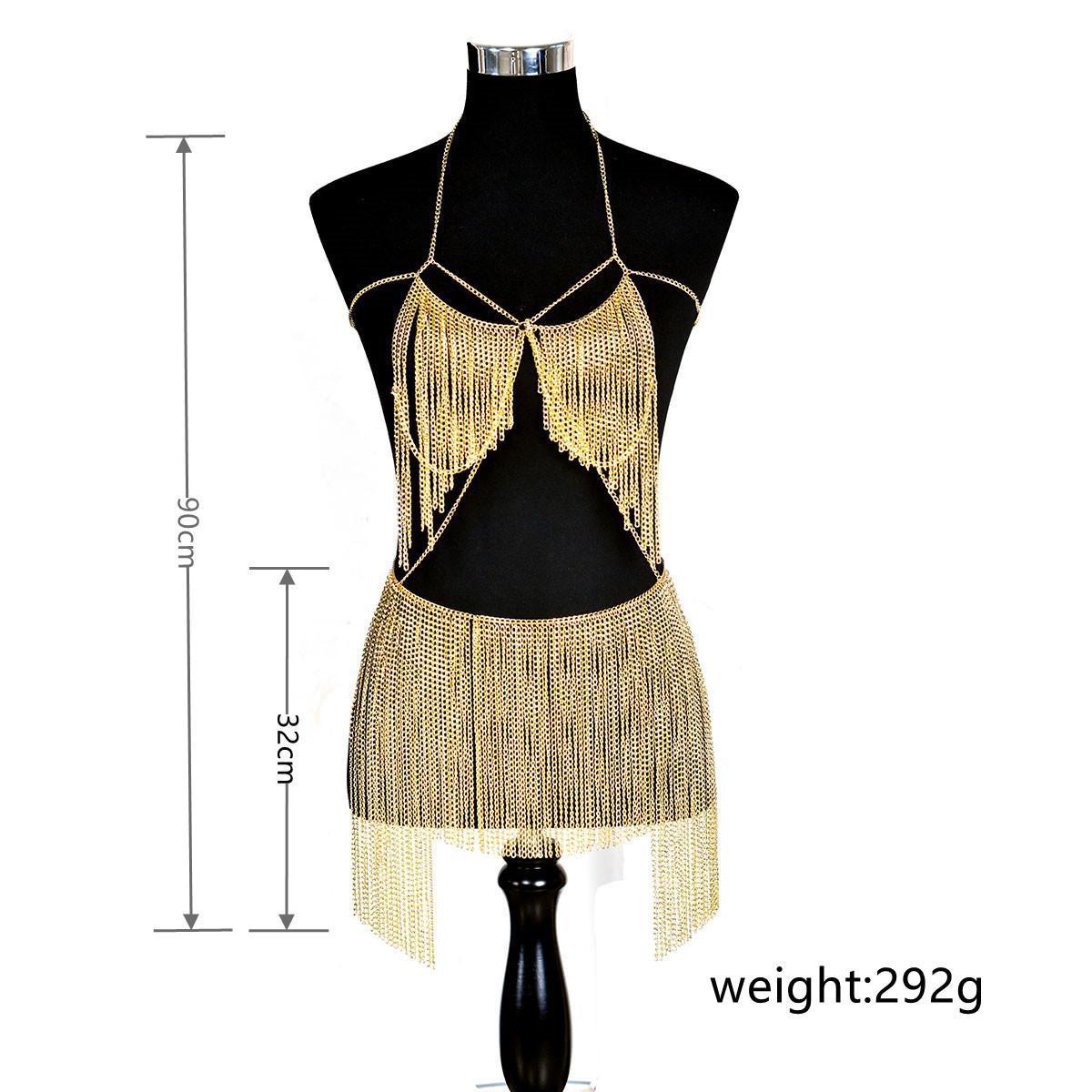 Una variedad de sexy vestido de cadena de metal multicapa con personalidad, cadena corporal, ropa interior, accesorios para danza del vientre, cadena corporal