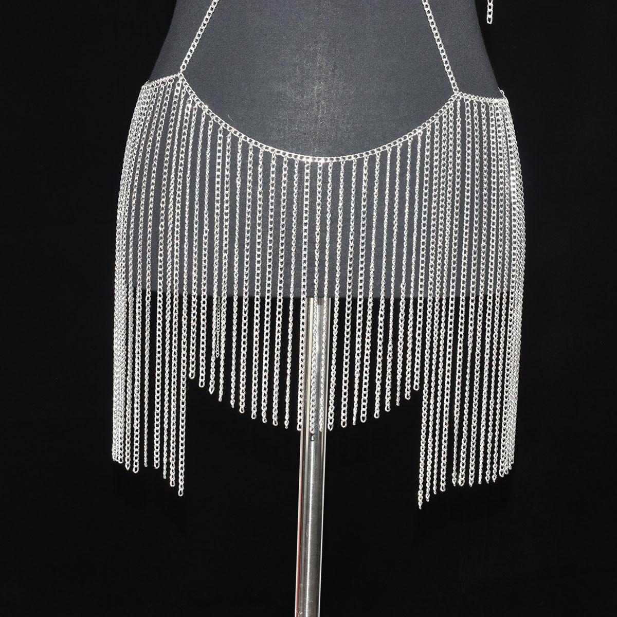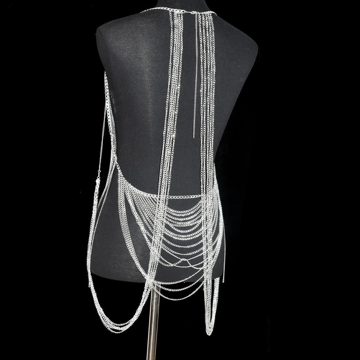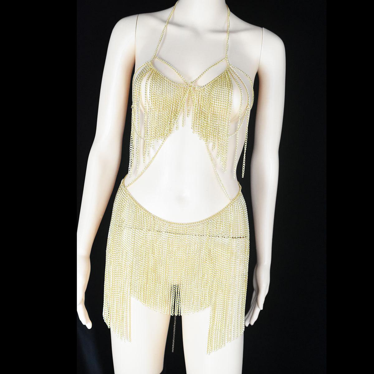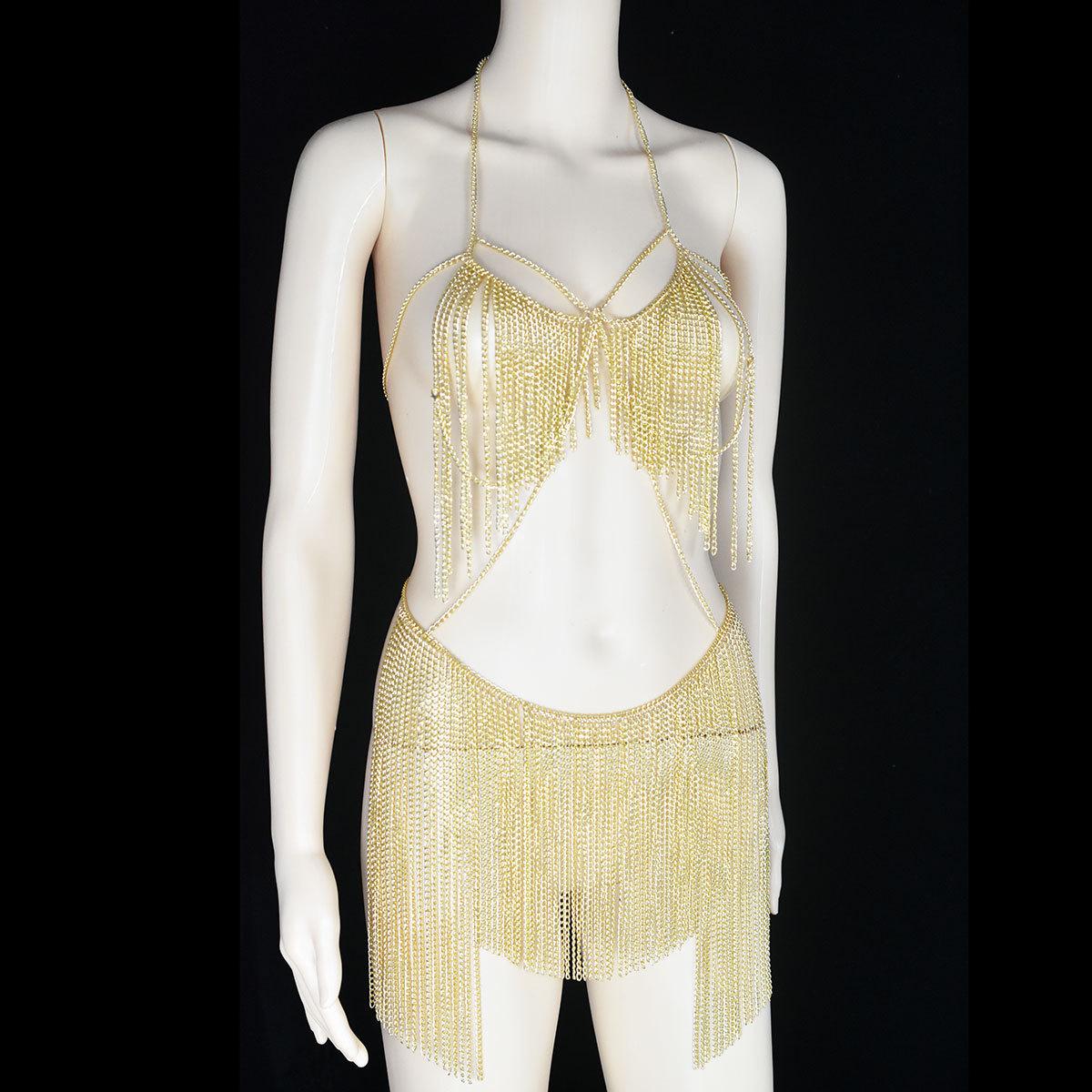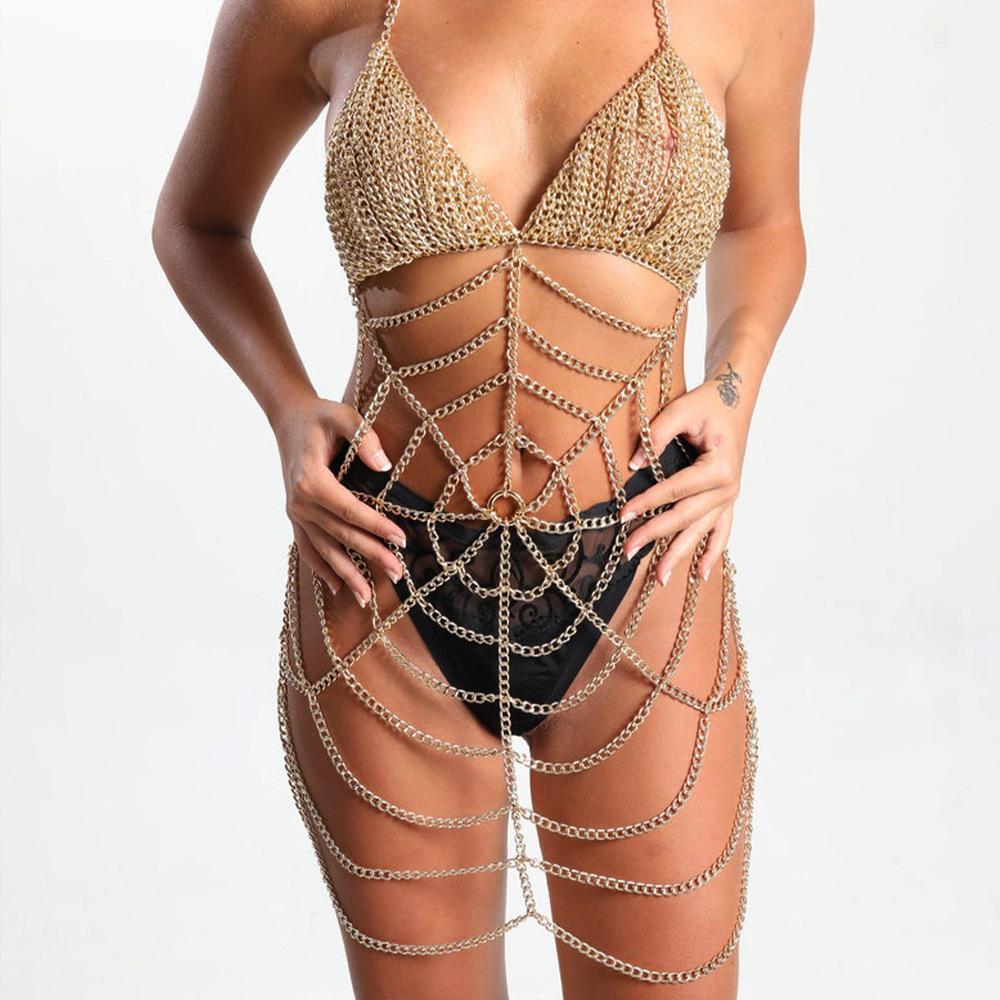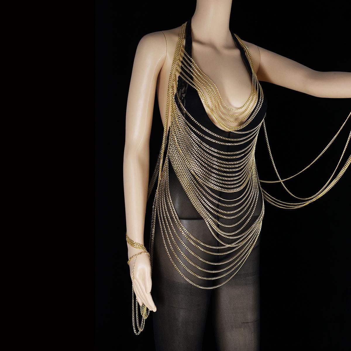 Una variedad de sexy vestido de cadena de metal multicapa con personalidad, cadena corporal, ropa interior, accesorios para danza del vientre, cadena corporal